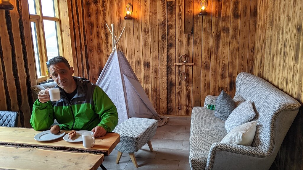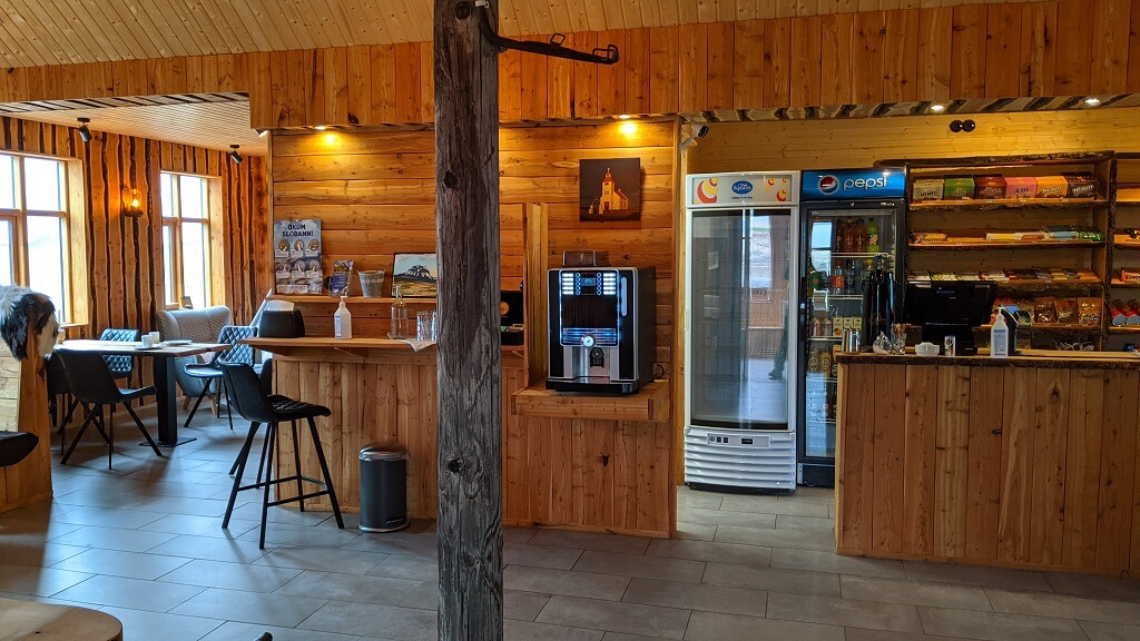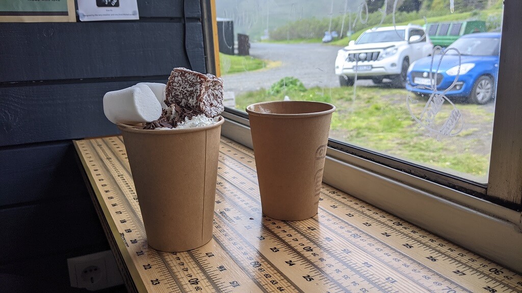 אחרי שבילינו קצת במקום, הגיע הזמן להמשיך. התלבשנו בזריזות ותוך פחות משעה הגענו חזרה. נכנסנו לקפיטריה הנחמדה שנמצאת בחניון Reykjadalur Café. קנינו קפה ועוגיות לדרך. הקפה היה לא רע והעוגייה הייתה מצוינת. התחנה הבאה – מתחם בדיקות הקורונה שברייקיאוויק.