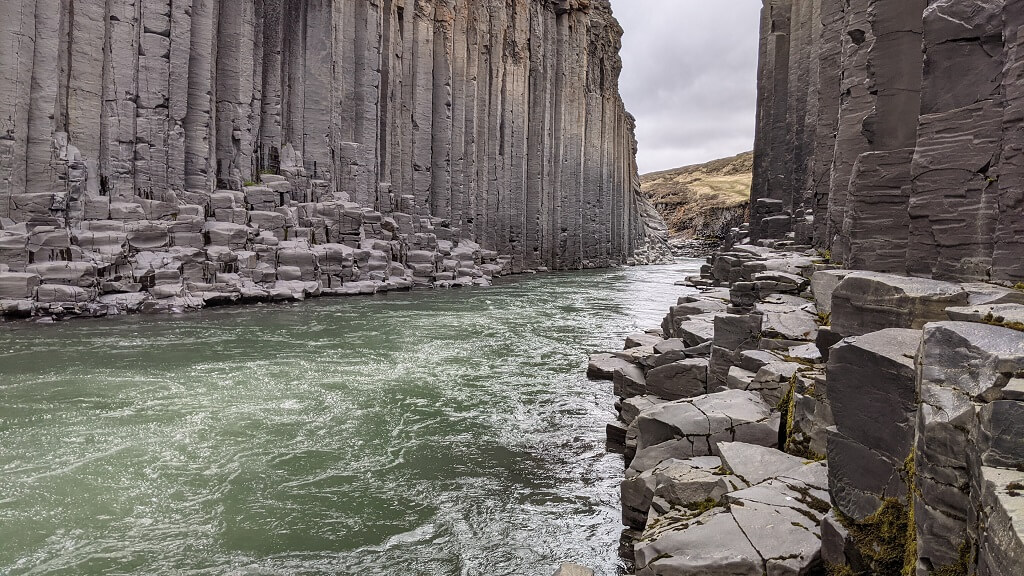 מסלול הטיול הולך על המצוק שמעל הקניון בשביל מסודר ומגודר. בעבר ניתן היה גם לרדת לתוכו וללכת בשטח באופן חופשי אבל זה גרם נזקים לצמחיה וכיום אסור לרדת מהשבילים המסודרים. המסלול מתחיל כמו כל המסלולים באיסלנד – בעלייה חזקה וכמו במסלולים רבים – חוזרים באותה הדרך