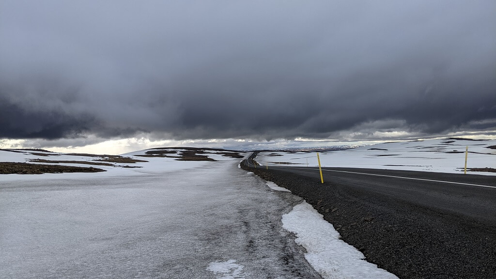 אחרי שהתגברנו על המבוכה הקטנה, התייעצנו עם הפקיד לגבי הנסיעה אבל לא היה לו שום דבר לחדש לנו אז יצאנו לדרך. קיווינו להגיע לעיירה בשעה מוקדמת וללכת לבילוי בספא המקומי עליו קראנו המלצות. בדרך חלפנו על פני הפנייה למפלי Dettifoss (שם ביקרנו ביום הקודם). משני צדדי הכביש ראינו רק שממה למרחקים אינסופיים. כל כך צחיח ושומם שאפילו כבשים לא ראינו שם.