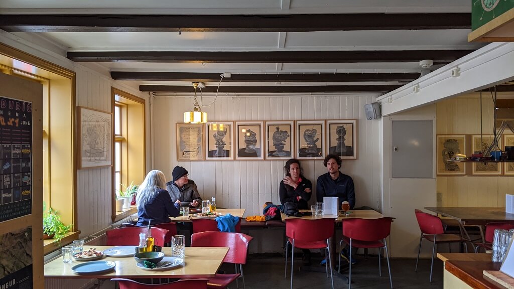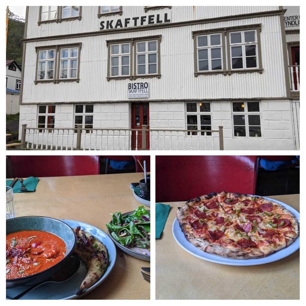 בחרנו לאכול במסעדת Skaftfell Bistro, מקום קטן ואותנטי עם אווירה של פעם. בעל הבית הסתובב במקום והסביר לנכנסים שאצלו מגישים פיצות ועוד כמה דברים קטנים בלבד. מסתבר שבסיידיספיורדר בעלי המסעדות מחלקים ביניהם את העבודה בקטע של חברות הדדית. יש מסעדה שמגישה אוכל איסלנדי, יש המבורגריה ואנחנו הגענו לפיצריה. באופן בלתי צפוי זו הייתה אחת המסעדות המוצלחות ביותר בטיול. פיצה מצויינת ומרק נפלא ולצידם סלט.