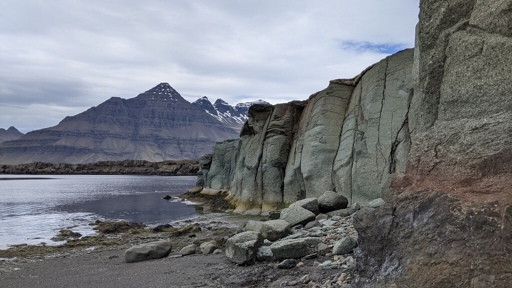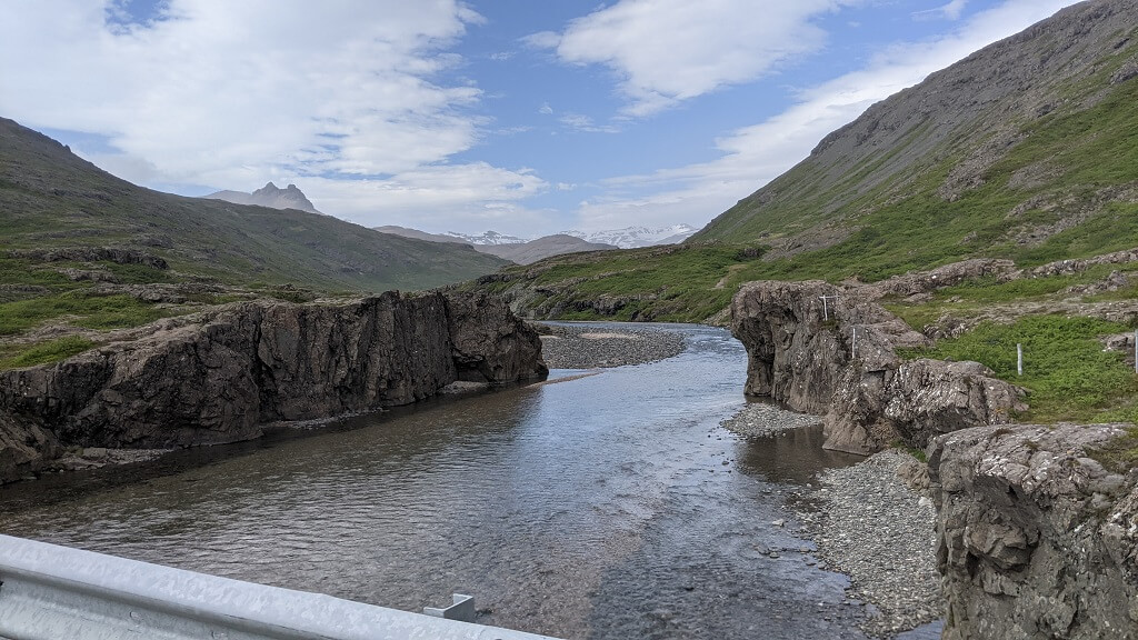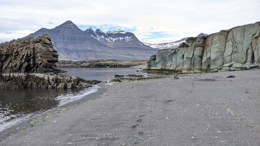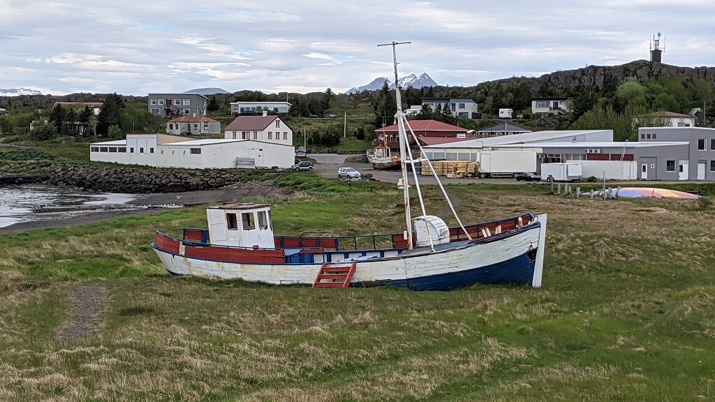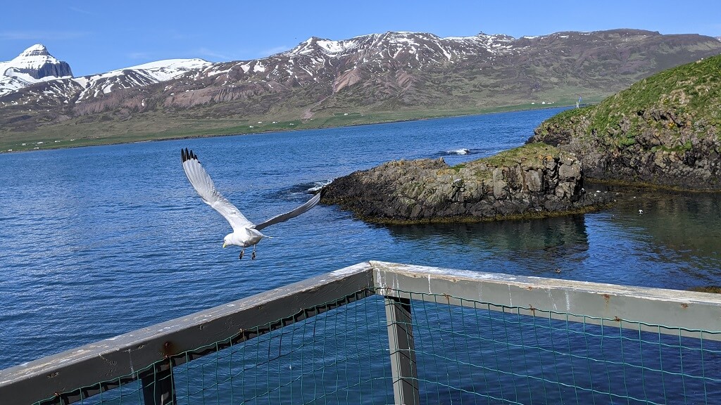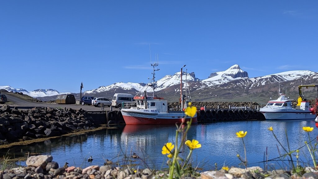 בדרך לעיירה הבאה מצאנו עוד בית גג-דשא פוטוגני. ומייד לאחריו הגענו לעיירה קטנטנה בשם Breiddalsvik. במהלך הטיול שלנו, שמנו לב שבאיסלנד נותנים ביטוי לחודש הגאווה בצבעים ודגלים והיה נחמד לראות שגם בעיירה כה קטנה מצאנו ביטוי לכך. ליד המזח מצאנו גן משחקים ובו סירה שניתן להכנס אליה (ככה מרגילים את הילדים להיות יורדי -ים מגיל צעיר) וטרמפולינה צבעונית שכמוה ראינו בהרבה מאוד מקומות במהלך הטיול.