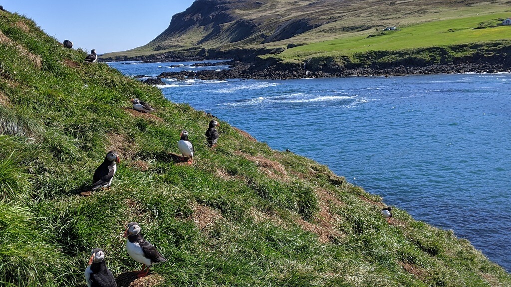 מושבת הפאפינים ממוקמת ככמה דקות נסיעה אחרי העיירה. ממש ליד הים. יש שם חניון קטן ומסודר וגם מרכז מבקרים שהיה סגור (כנראה בגלל הקורונה). מהחניון יש שביל שמגיע לתוך אזור הקינון של הפאפינים. כמובן שיש עוד ציפורים אבל מאות הפאפינים הם שגונבים את כל תשומת הלב. הסתובבנו בשבילים וצפינו בהם מקננים, עפים וחוזרים, מטיילים, נחים ועוד וכל זה ממרחק של חצי מטר. אלמלא הצחנה שהייתה שם (צחנה שמאפיינת אזורי קינון) – זה היה מושלם.