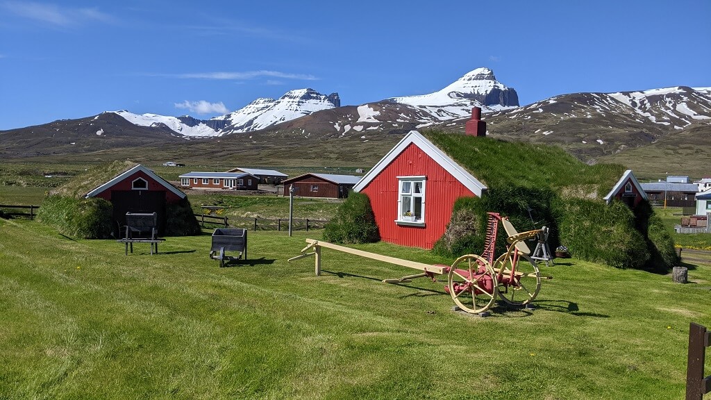 אחרי הקפה עצרנו ב Borgarfjörður Eystri ליד בתי הדשא המקומיים. יש בתים כאלו בהרבה מקומות באיסלנד, המקור של בתי הדשא האלו הוא כבר מראשית ההתיישבות האיסלנדית באי ולאורך השנים הבתים התפתחו והשתנו אבל העיקרון נשאר זהה. שימוש בעשב המקומי כדי לשפר את הבידוד של הבית מפני הקור הקיצוני והרוחות החזקות.