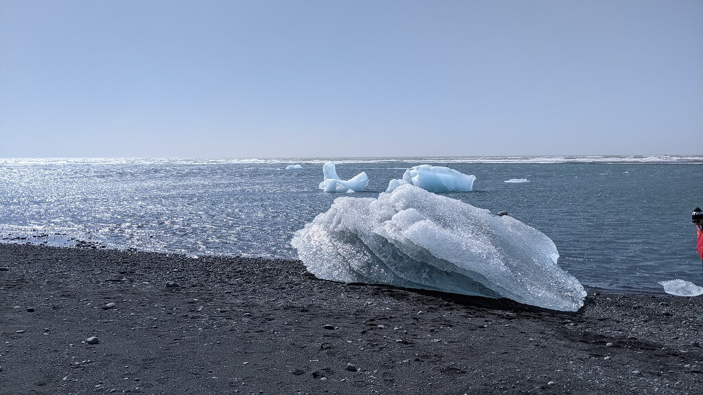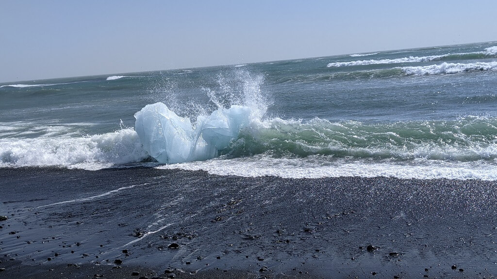 חוף היהלומים – וואו איזה מראה מיוחד. חוף ים ועליו מתנוצצים שברי קרחונים בכל מיני גדלים ולאורך החוף בתוך המים, שטים להם קרחונים, מתנדנים עם הגלים. טובעים ומציצים – מקום מלהיב ומהפנט.