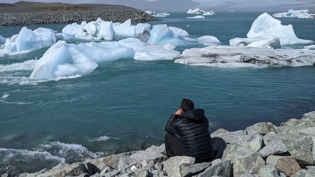 בשלב הזה, כפי שהמדריך אמר לנו בסיור, הרוח מאוד התגברה, אז עזבנו את החוף וחזרנו לחניון. בחנייה ראינו אנשים לבושים עם חליפות צלילה וסוחבים קייאקים בדרך ללגונה, האמת? ריחמתי עליהם ממש. נראה לי שצפוי להם שייט קשוח במיוחד, אבל באיסלנד אי אפשר להיות בררנים כי מזג האוויר, כמעט תמיד, קשוח.