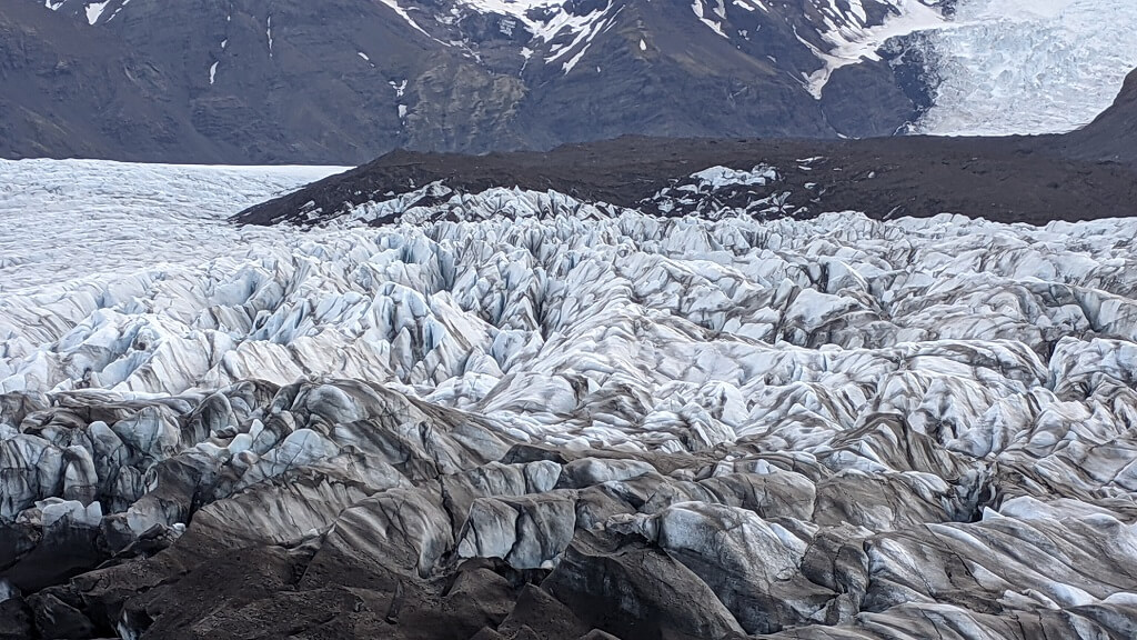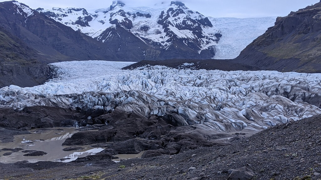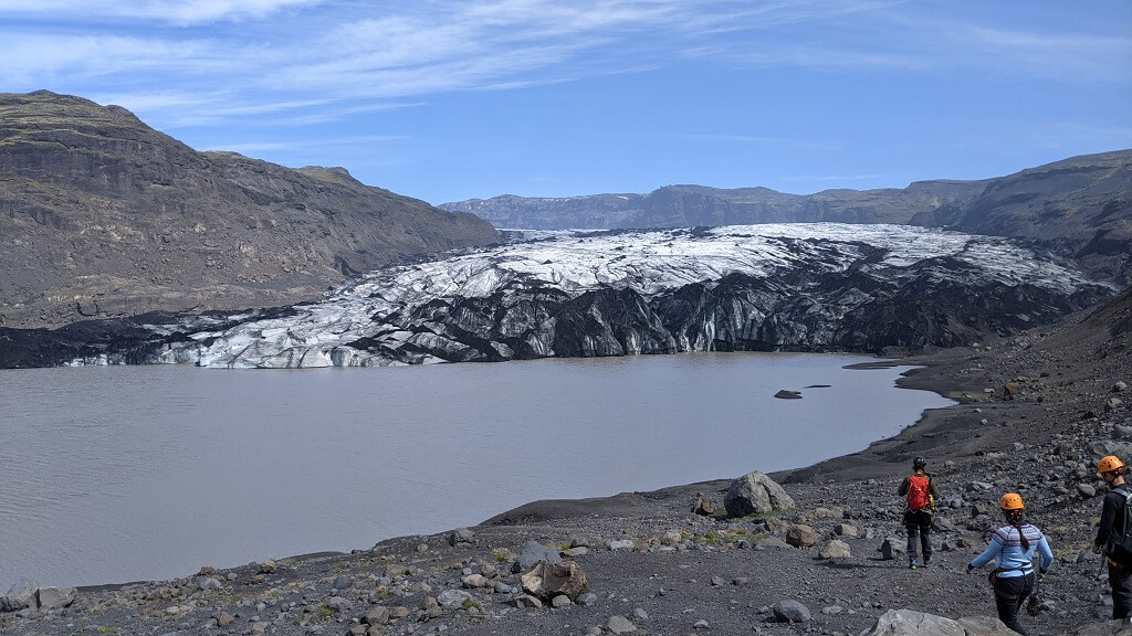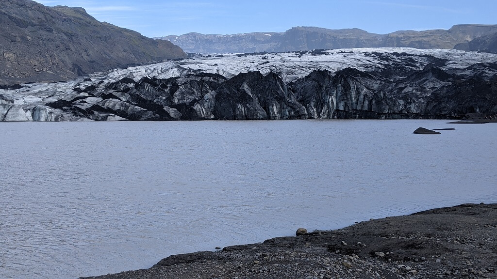 בדרך חזרה לכיוון ויק עצרנו לטיול קצר בקרחון Sólheimajökull glacier. נכנסנו עם האוטו עד החניון ומשם הלכנו כעשר דקות עד לנקודת התצפית. מהחניון הזה יוצאות קבוצות להליכה על הקרחון. יש שם לפחות חברה אחת שמוציאה טיולים מודרכים מהחניון ונראה לנו שגם מדריכים פרטיים מגיעים לשם. מנקודת התצפית יכולנו לראות שתי קבוצות שעלו על הקרחון. הם התקדמו באיטיות רבה, גם כי הליכה על קרחון דורשת זהירות רבה וגם כי יש ציוד רב שמאט את הקצב.