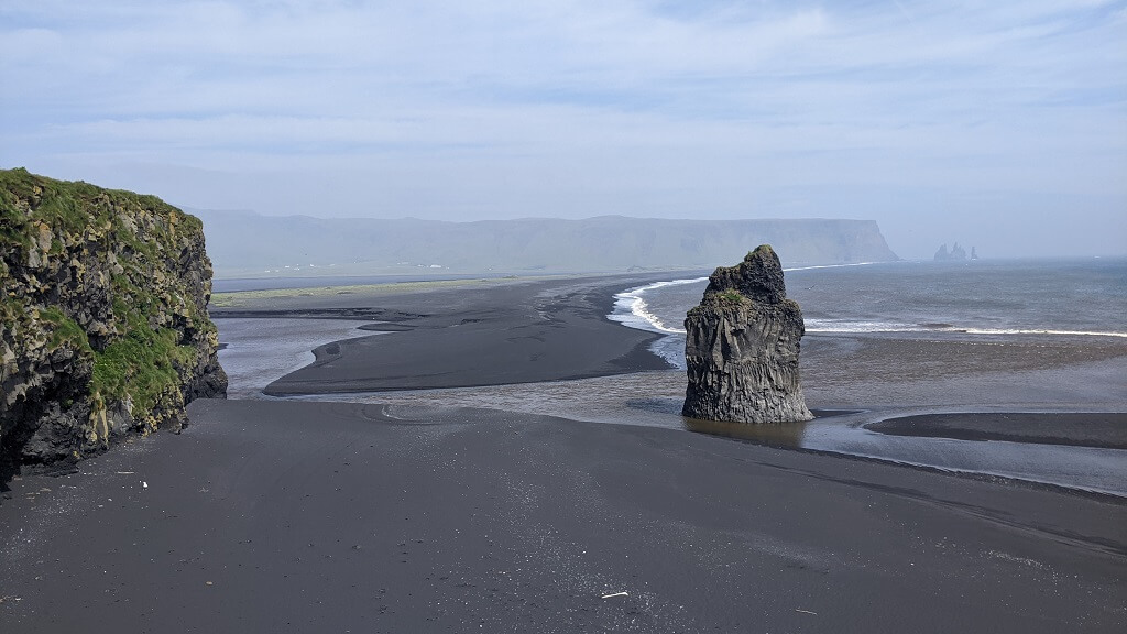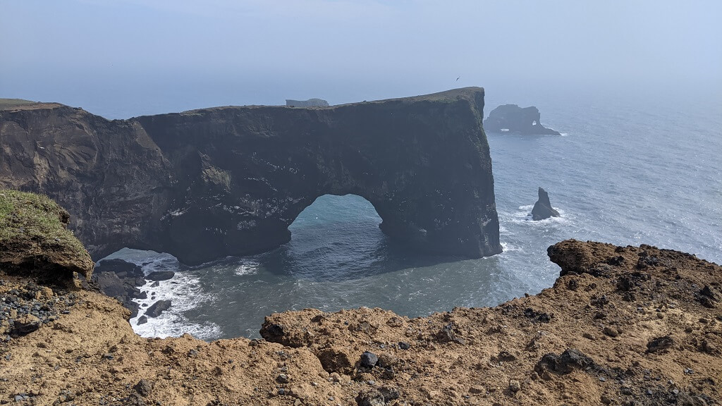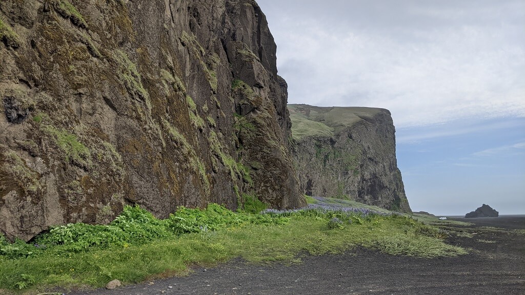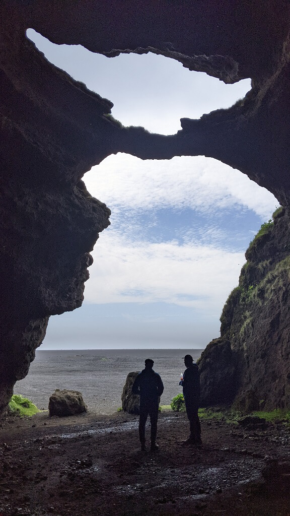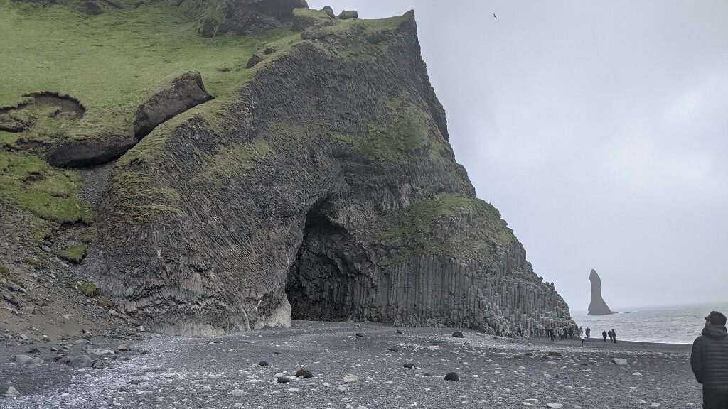 כשהתקרבנו לויק ראיתי מרחוק גבעה ירוקה מתנוססת למרחוק. החלטנו לעצור שם באופן ספונטני ולראות במה מדובר. שביל לא סלול הקיף את הגבעה והגיע עד לים שם מצאנו חוף פראי ונטוש כמעט לחלוטין ומערה שסיור צלמים מצא בה מסתור מפני הרוח. המקום נקרא Hjörleifshöfði hellir. בגלל הרוח שהייתה מאוד חזקה, הסתפקנו בביקור קצר במערה לפני שהמשכנו בדרכנו.