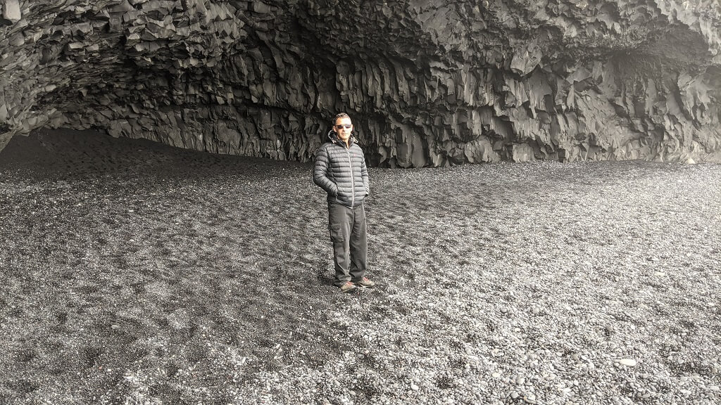 אחרי שהתארגנו במלון, החלטנו לנסוע לחוף השחור Reynisfjara Beach המפורסם. השארנו את האוטו בחניון הגדול וירדנו לטייל על שפת הים. ממש בקרבת החניון יש מערה גדולה ויפה Hálsanefshellir Cave. המערה מוקפת בעמודי הבזלת האפורים שבר ראינו במספר מקומות באיסלנד והיא גדולה ומרשימה.