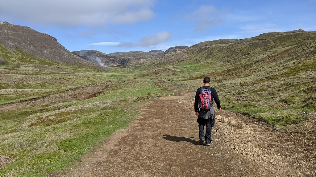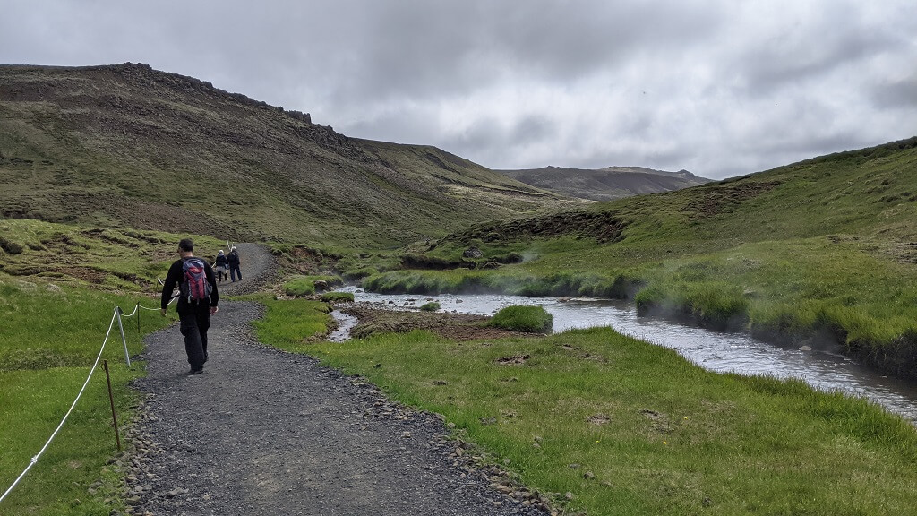 היעד הבא שלנו היה מסלול הליכה שרצינו להגיע אליו כבר כששמענו עליו בארץ – Reykjadalur Hot Spring Thermal. כפי שאולי ניתן לנחש לפי השם, זהו מסלול הליכה המוביל אל נהר חם ובו אפשר להשתכשך בטבע. עד היום לא היינו בטוחים שנספיק להכניס את המסלול הזה לטיול ושמחנו שגם הזמן וגם מזג האוויר אפשרו לנו את זה.
