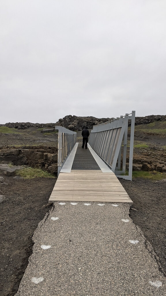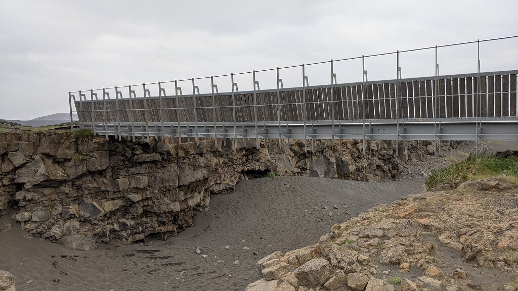 הרעיון של המקום הוא שבצד אחד הגשר מחובר אל הלוח הטקטוני האמריקאי ובצד השני שלו, אל הלוח האירו-אסייתי. וכמובן שאפשר גם לרדת וללכת מתחת לגשר. למעשה איסלנד כולה מחולקת בין 2 הלוחות והפארק הזה רק ממחיש זאת עם גשרון קטן והסברים בנושא. חביב למדי אך ממש לא מקום הכרחי. בזאת מיצינו את היום הזה עד תומו, חזרנו למלון והלכנו לישון.