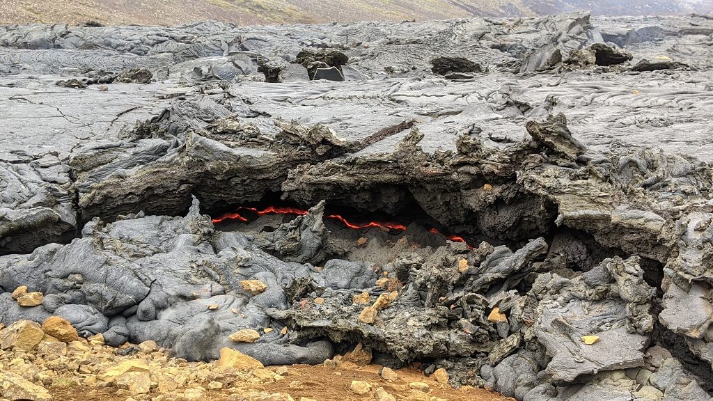 למרות שהפעם הלבה הייתה פחות חיה ונושמת, עדיין המראה מרשים ביותר. העוצמה הבלתי נתפסת של הטבע, נפרשת מול העיניים ולנו לא נותר אלא להתפעל. בגלל תנאי מזג האוויר הקשים, ויתרנו על טיפוס לתצפית גבוהה יותר. חזרנו לרכב ונסענו לעיירה קטנה גרינדוויק לארוחת צהריים נחמדה במסעדת Papas שבה אכלנו גם בתחילת הטיול. אחר כך חזרנו לקפלאוויק, קנינו לנו חטיפים לטיסה חזרה ובכך חתמנו את הטיול המאוד מאוד מוצלח שלנו באיסלנד.