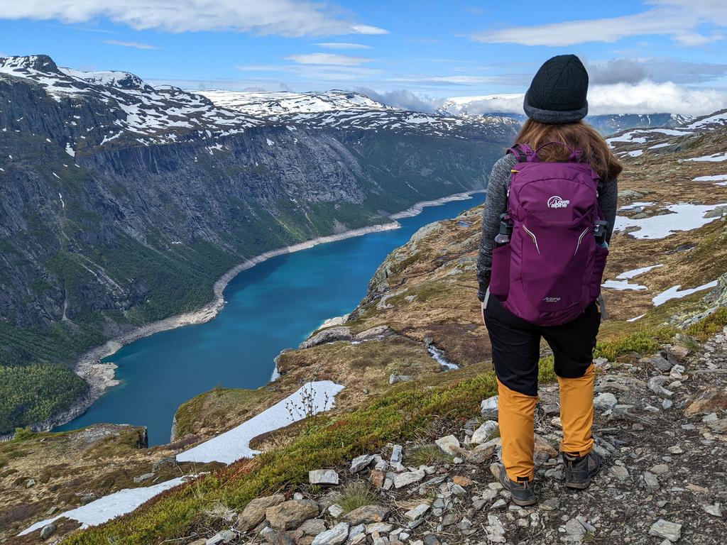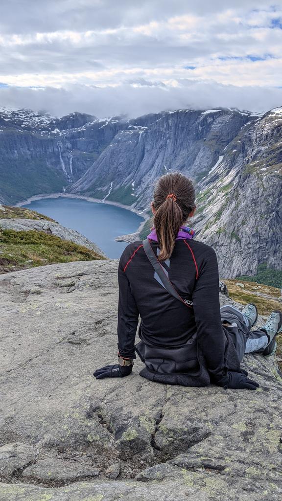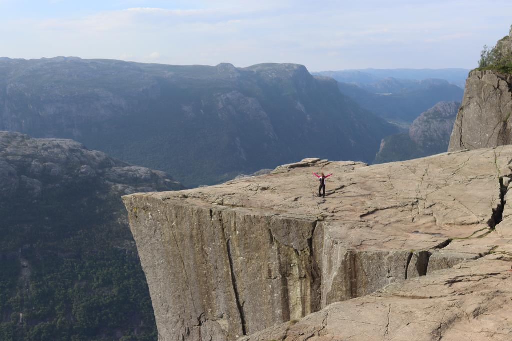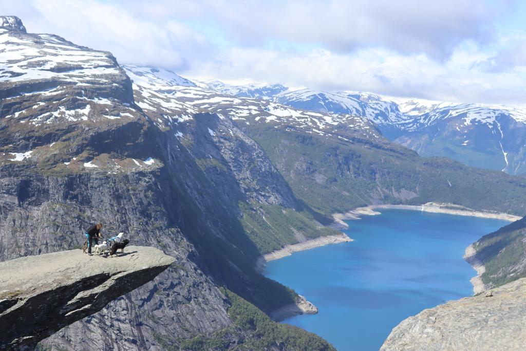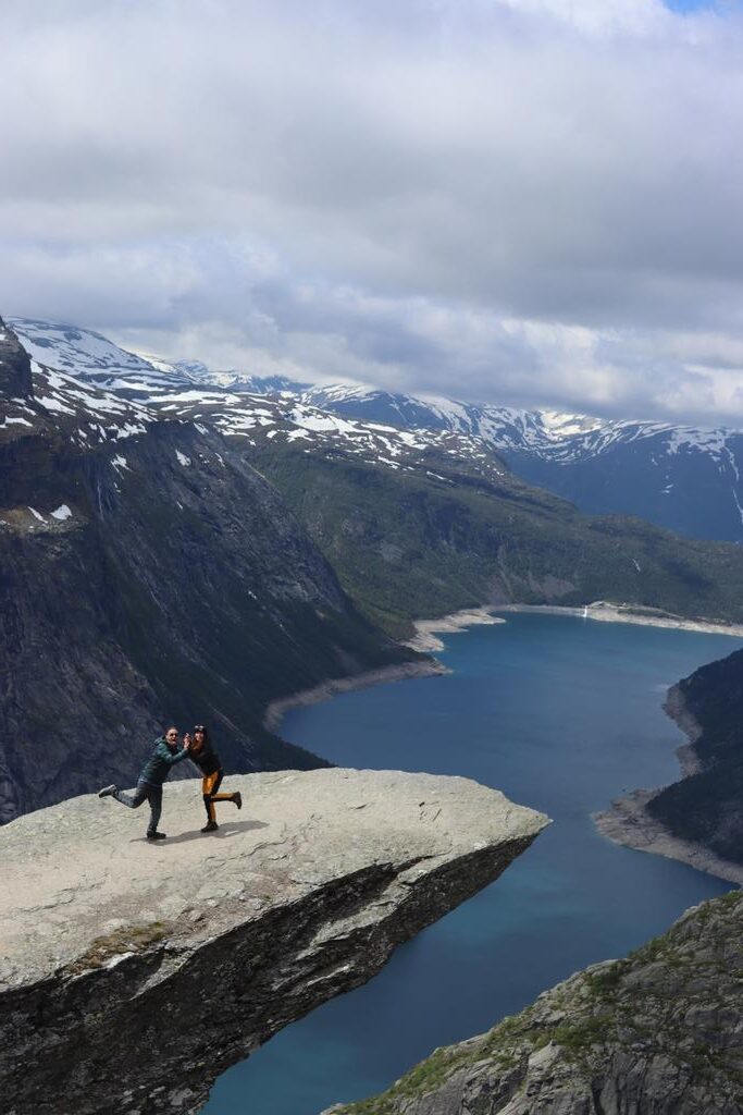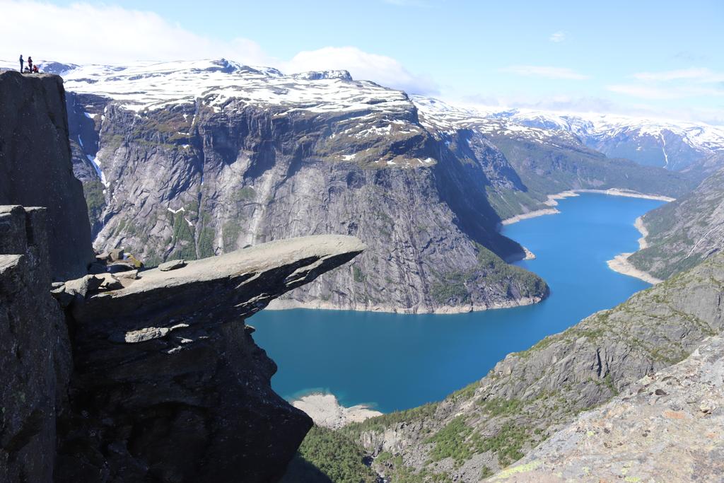 אחרי ארבע שעות של עלייה, הגענו סוף כל סוף ללשון הטרול. במקום היו כבר לא מעט אנשים ותור שנראה לא כל כך ארוך, של אלו שרוצים להצטלם על לשון הטרול עצמה. בטיפשות קלה, הצטרפנו לתור המסודר רק כדי לגלות שכמעט כל אחד שהולך להצטלם עושה 1000 פוזות למצלמה והחוצפנים שביניהם גם בודקים את התמונות וחוזרים למקצה שיפורים.