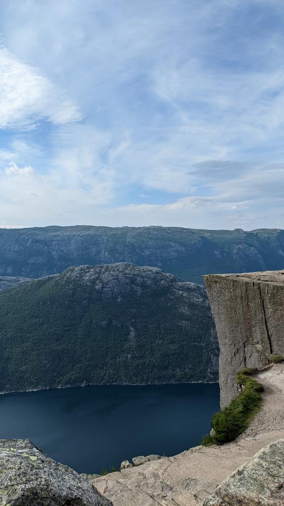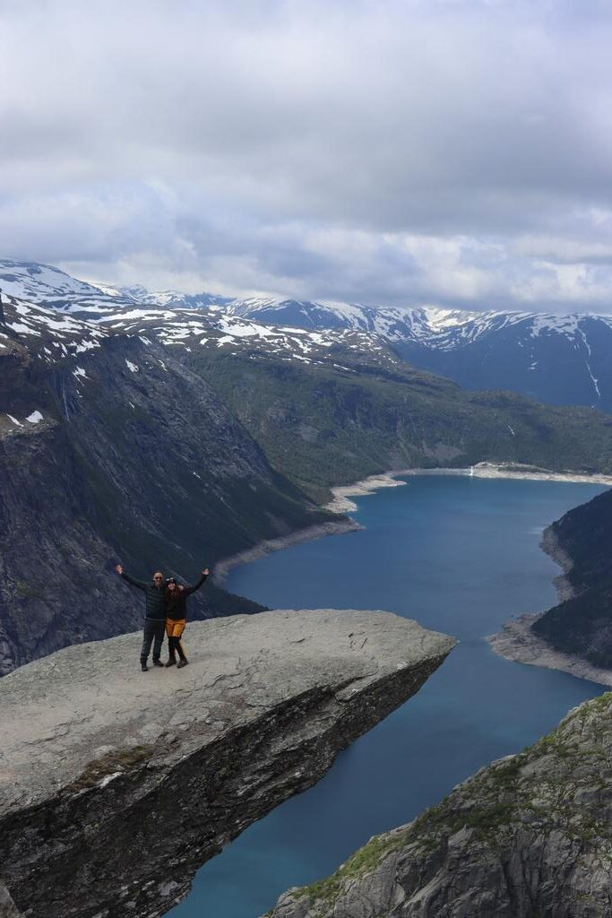 מהון להון חיכינו בתור כשעה וחצי – זה היה מטופש ומיותר, התמונות יפות אבל היו מקומות נוספים שניתן היה להסתפק בהם. בשורה התחתונה, גם אם התור נראה קצר – הוא לא! ולא מומלץ לעמוד בו. למי שסקרן רק אגיד שאני מלכתחילה לא תכננתי לעלות על חתיכת הסלע הצרה הזו, שתלויה בגובה מטורף מעל הפיורד. אפילו היה לי קשה לצלם את דן וזוהר כשהם היו עליה! הם זרמו עם הסרבנות שלי אבל כן קצת התלוננו על זה שהרעד בידיים (מהפחד) פגע איכות התמונות.