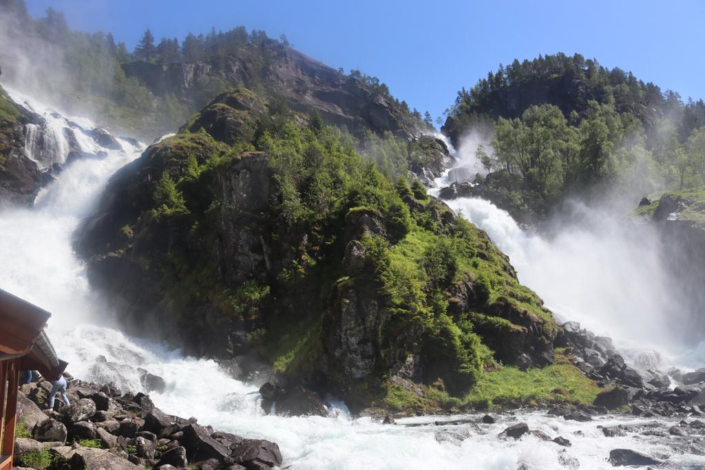 משם המשכנו לאחד המפלים המפורסמים יותר בנורבגיה, מפל בשם Låtefossen . המפל מפוצל לשני חלקים עוצמתיים מאוד. כל חלק בפני עצמו הוא מפל מצדיק עצירה וביחד זה בהחלט היה מפגן כוח מרהיב.