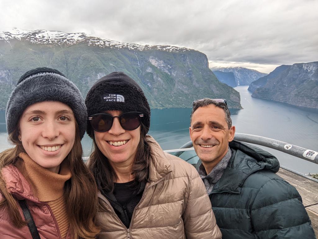 אחרי שנגמרו החיבוקים וההתרגשות החלה להרגע, יצאנו לדרך. דבר ראשון נסענו לתצפית Stegastein viewpoint. היינו בה בתחילת הטיול וזו בהחלט נקודה שמצדיקה ביקור חוזר. עלינו שוב בדרך המתפתלת, אחרי שבועיים של נהיגה בנורבגיה, דן כבר היה מאוד מיומן בתמרון בכבישים הצרים והמפותלים וטוב שכך כי היו הרבה יותר מכוניות ותיירים. כל כמה דקות הגיע רכב מולנו וחלק מהנהגים היו במיומנות נמוכה מאוד על גבול הסכנה. אבל כאמור, הנוף למעלה שווה הכל.