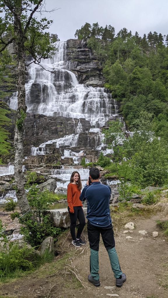 המשכנו בנסיעה למפל המפורסם Tvindefossen שביקרנו בו לפני כשבועיים ביום הראשון של הטיול. זכרנו שזה מפל מרשים ואכן הוא יפה ומרשים ונוח מאוד להגעה, שתי דקות הליכה מישורית מהחנייה. כמובן שהיו בערך פי חמש אנשים מהפעם הקודמת. בלי ספק העונה התחילה.