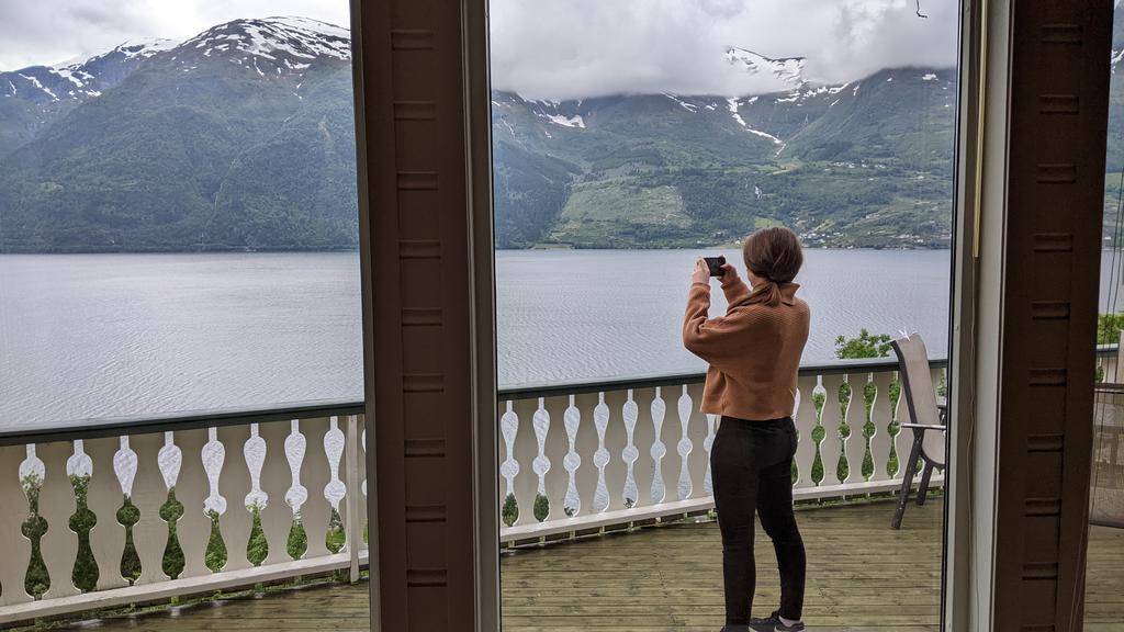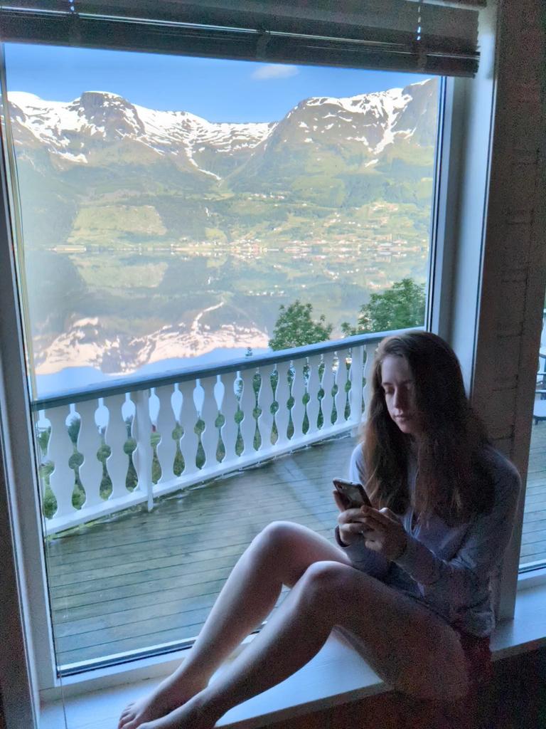 אכלנו ארוחת ערב ביתית עם כוס יין, אל מול הנוף הנפלא של הפיורד.
