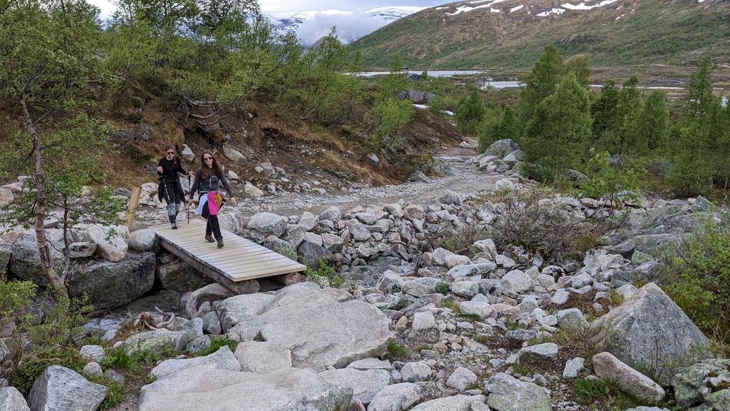 עצרנו לארוחת בוקר נחמדה בבית קפה חביב Kafe Pause במרכז העיירה אודה (Odda). אחר כך עצרנו בסופר לקנות קצת מצרכים לדרך ולארוחת ערב ומשם נסענו לקרחון (Buerbreen). הקרחון הוא כנראה חלק מפארק מוסדר כי החנייה עולה שם כסף, 185 קרונות, שמשלמים ביציאה. עד כה רק במעט מקומות היינו צריכים לשלם על חניה ולא נראה שזה קשור למידת הפופולריות של המסלול.