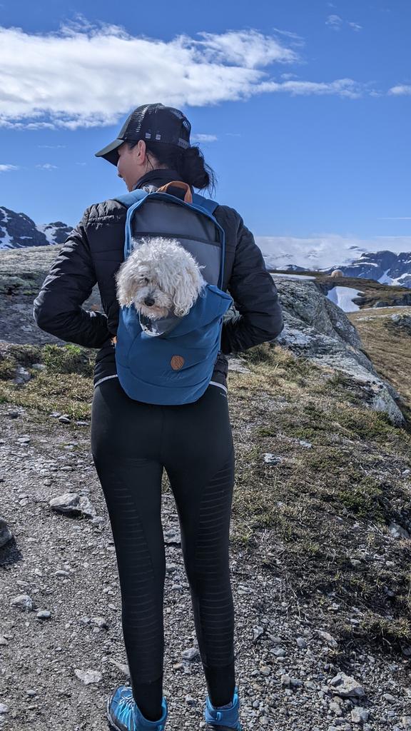 בערך שעתיים וחצי לתוך המסלול, הגיעה מאחורינו בחורה צעירה עם מנשא תינוק, להפתעתנו הרבה וגם קצת לשמחתנו, במנשא התינוק שלה היה כלבלבון קטן וחמוד. קצת אחרי כן ראינו עוד בחורה צעירה מגיעה, היא סחבה על הגב תיק ענקי עם ציוד ללינת שטח ובראש התיק – בובת אלפקה! מה אני אגיד? בקושי סחבתי את עצמי, נראה לי מגוחך לסחוב כלב או בובת אלפקה לטיול! המסקנה: יש אנשים מוזרים בעולם אבל אותנו זה ממש שעשע לראות גם את האלפקה וגם את הכלב. במסלול היו הרבה אנשים שיצאו עם הכלב/כלבים לטיול אבל רוב הכלבים הלכו עצמאית קשורים עם חבל ורצועה