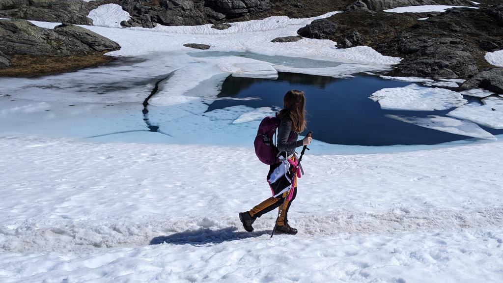 הדרך למעלה לקחה לנו ארבע שעות עם מעט מאוד הפסקות. הדרך עצמה מאוד יפה ומגוונת, לא מאוד קשה אבל גם לא קלה. היו אזורים שהלכנו בבולדרים, על אבנים וגם חצינו שדות שלג ופגשנו לא מעט אנשים, חלקם יצאו לפנינו, חלקם ישנו בלילה בשטח, חלקם יצאו אחרינו