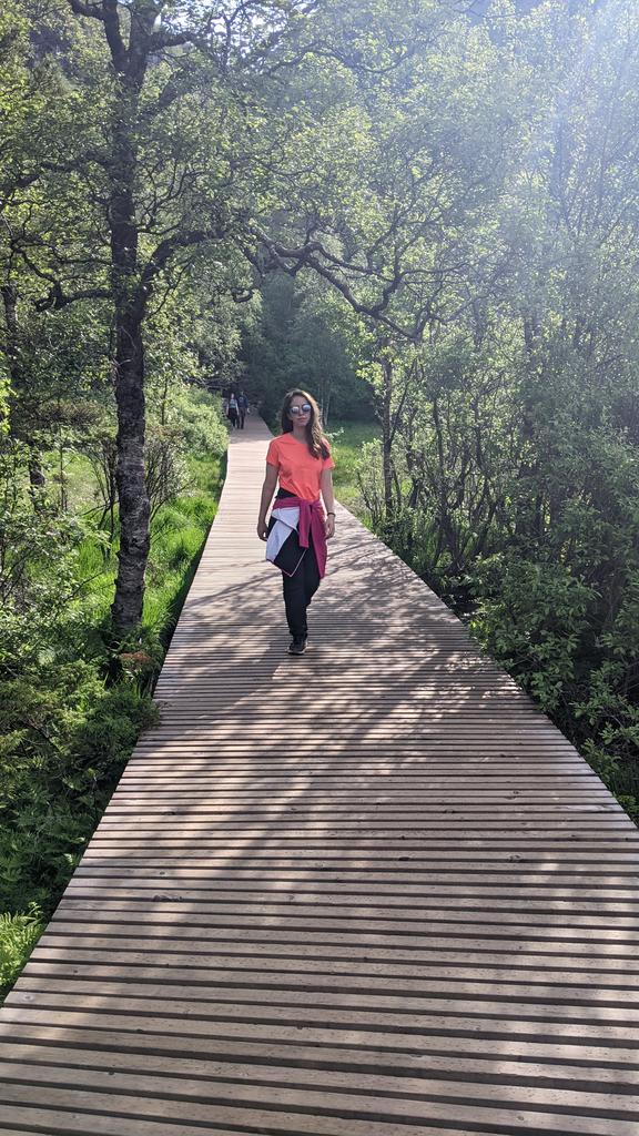 המסלול עצמו מגוון מאוד. מתחיל בעלייה דרך יער וממשיך על שבילי עץ שנפרשים בתוך שדה שנראה כמו ביצה. אחר כך הגענו לאגמים קטנים ויפים ואז למעלה השביל עובר ליד קצה ההר וצופה על הפיורד.