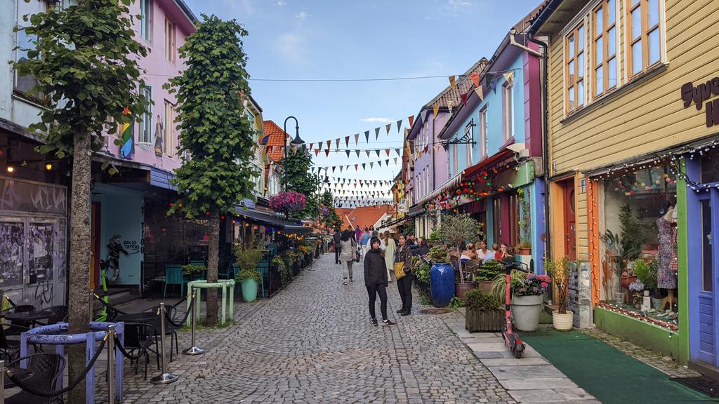 אחרי שהקפנו את רוב האגם, הסתובבנו קצת בחנויות, זה היה קצר כי אין בברגן הרבה אפשרויות ורוב חנויות האופנה שראינו היו ממש משעממות אבל האזור עצמו היה יפה ונעים לטיול, הגנים מאוד מטופחים והבניינים יפים וצבעוניים.