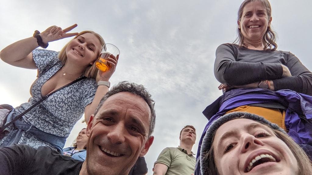 בשש וחצי התחלנו לצעוד לכיוון הפארק שבו תתקיים ההופעה. הרחובות של העיר היו מלאים באנשים שהלכו יחד איתנו. חבורות של צעירים אבל לא רק! ראינו גם משפחות עם ילדים צעירים יחסית, אנשים בגילנו וגם מבוגרים יותר. נחש זוחל של אנשים שכולו נע לאותו הכיוון. המסעדות ובתי הקפה השמיעו מוזיקה של הלהקה בקולי קולות והאווירה הייתה תוססת ומלהיבה.
