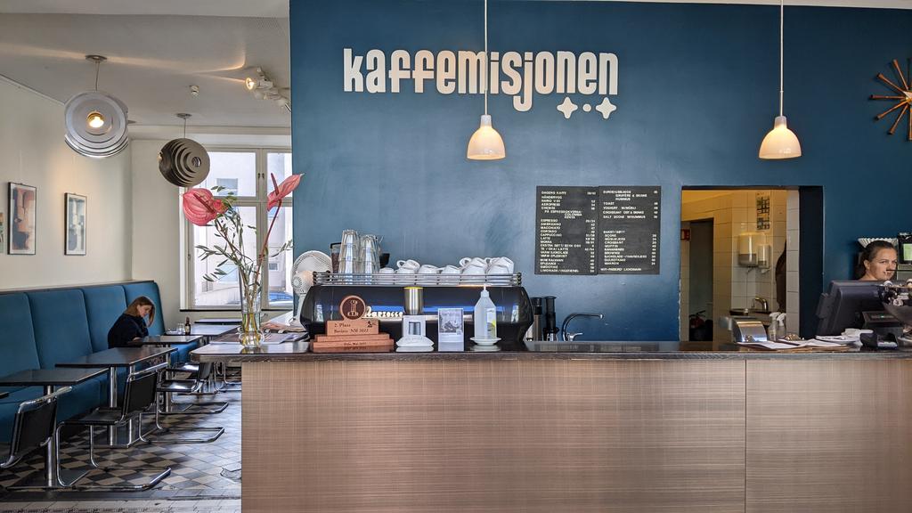 את היום האחרון של הטיול התחלנו בארוחת בוקר בבית קפה בשם Kaffemisjonen שנראה כאילו הגיע ממזרח אירופה והתמקם לו בלב ברגן. הגענו אליו על סמך המלצות בגוגל ואני מודה שכשראינו אותו, היו לנו כמה רגעים של פקפוק, הוא נראה מאוד מיושן וטיפה מאובק אבל החלטנו להיכנס ולשבת, וזו הייתה החלטה טובה, הקפה היה מצוין והכריכים טריים ומושקעים, אפילו קנינו קצת פולי קפה כדי לקחת הביתה.