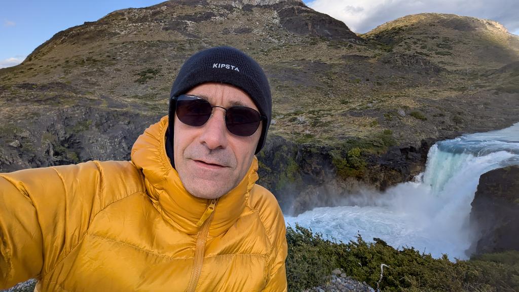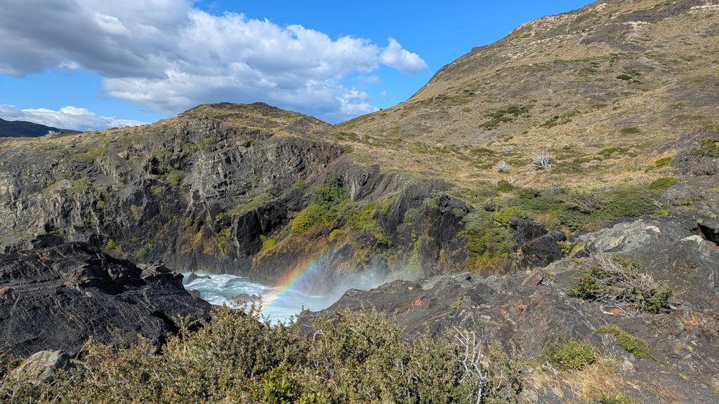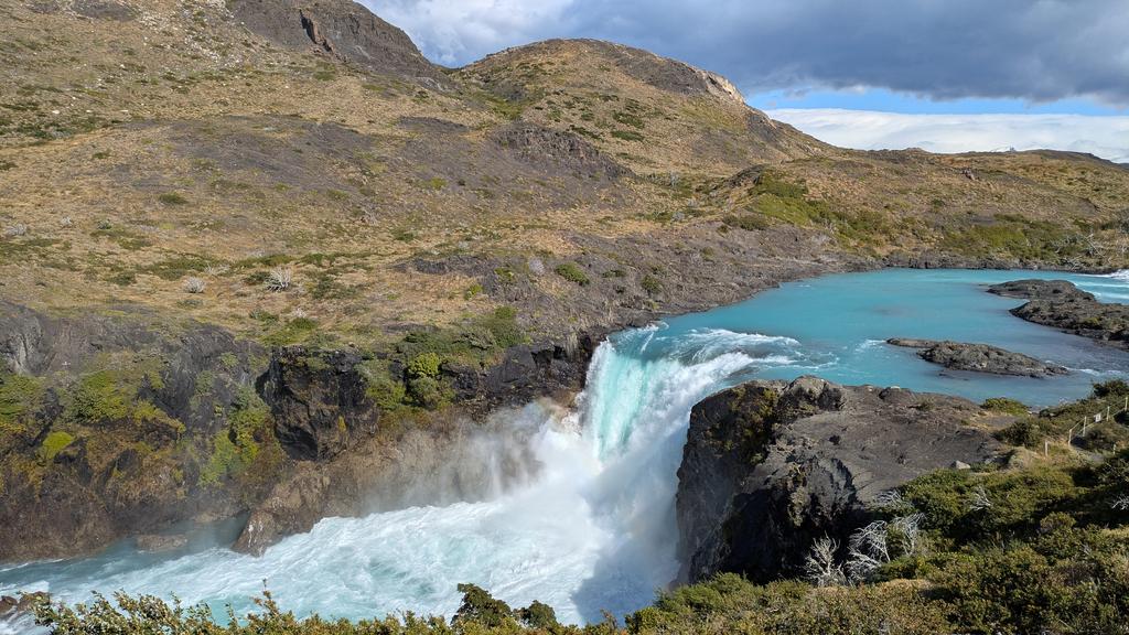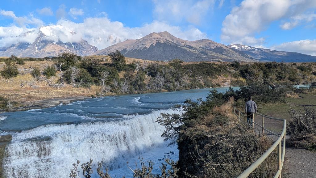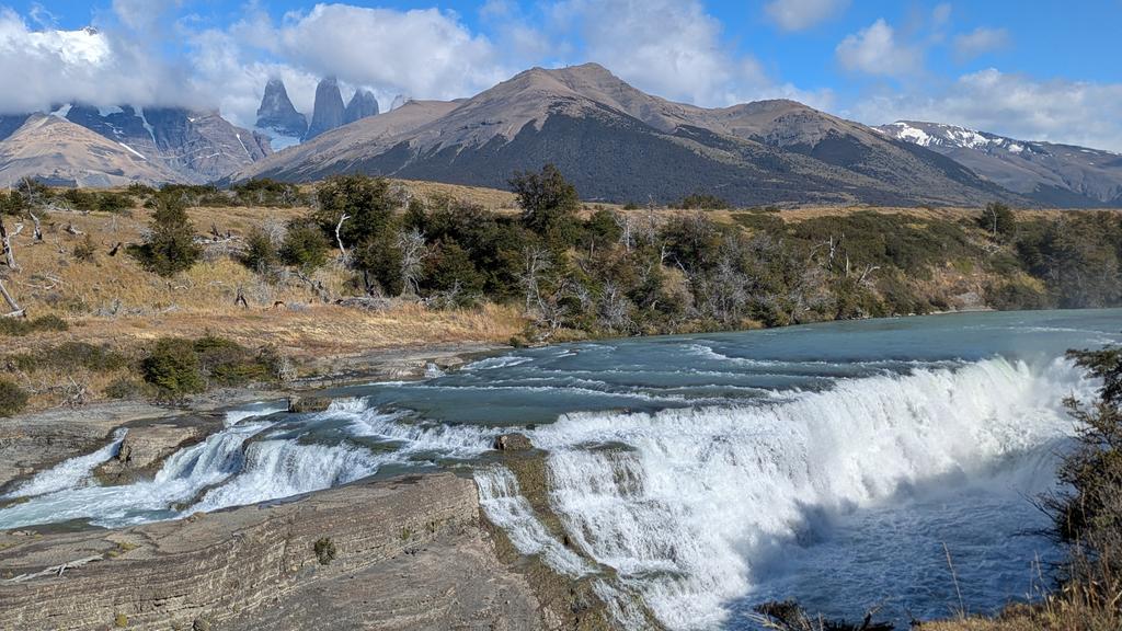 משם המשכנו למפל Cascada Rio Paine שמשקיף על הטורס. בהתחלה ענן ישב על הטורסים אבל אחרי איזשהו זמן הענן התרומם  ונחשפה לנו תצפית מאוד יפה שמשלבת את המפל והטורסים יחד. המפל עצמו די מרשים, כמו מפל קטן באיסלנד ובנורבגיה אבל בהחלט נקודה ששווה להגיע אליה.