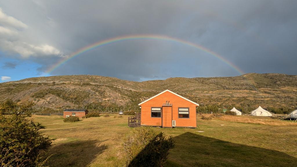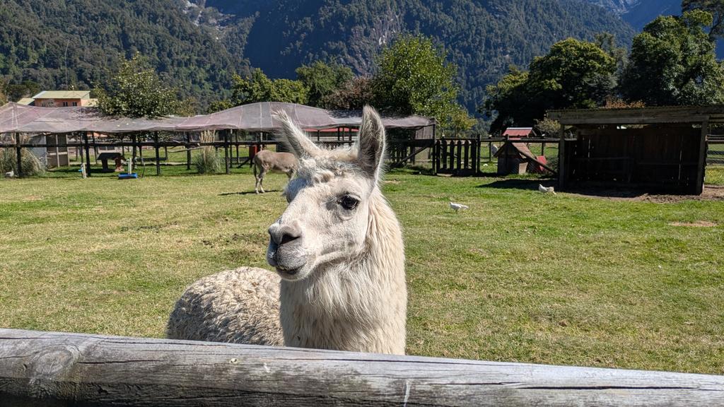 כשהגענו לריו סרנו, התחלנו לחפש את הבקתות שלנו, היישוב מאוד קטן ומורכב בעיקר מכמה בתי מלון, אבל אין שם קליטה ואין הכוונה, אז עצרנו ליד אחד משני המלונות הגדולים ושאלנו בקבלה, הם הפנו אותנו לכביש השני של העיירה, הכביש המקביל לשלהם, ושם מצאנו את החווה שלנו. ממש ליד השער ראינו שרשומה סיסמא לוויפיי (אין במקום קליטה סלולרית!) וזה כדי שניתן יהיה להתקשר לבעלים שיבואו להוביל אותנו לבקתה.