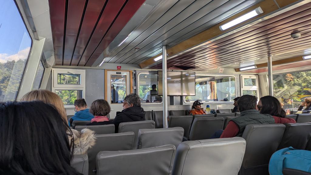 עלינו בקרון הסגור, שנראה היה ישן וחבוט  עם קצת סדקים בחלונות, התמקדנו בצד החיובי של הרכבל, כלומר – הנוף שהיה מרשים למדי. ממש מתחתינו יכולנו לראות שהישוב מגיע עד חצי הדרך של הרכבל וגם ראינו את השביל של הקמצנים שחסכו את עלות הרכבל ועלו ברגל. עלייה שנראית בהחלט קשה ועם פחות נוף כי הולכים חלק מהזמן בין עצים.