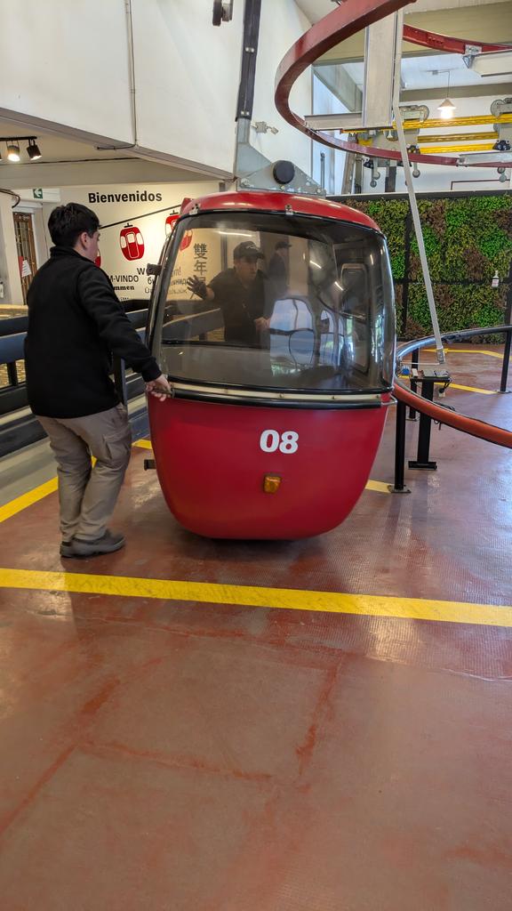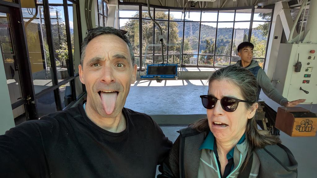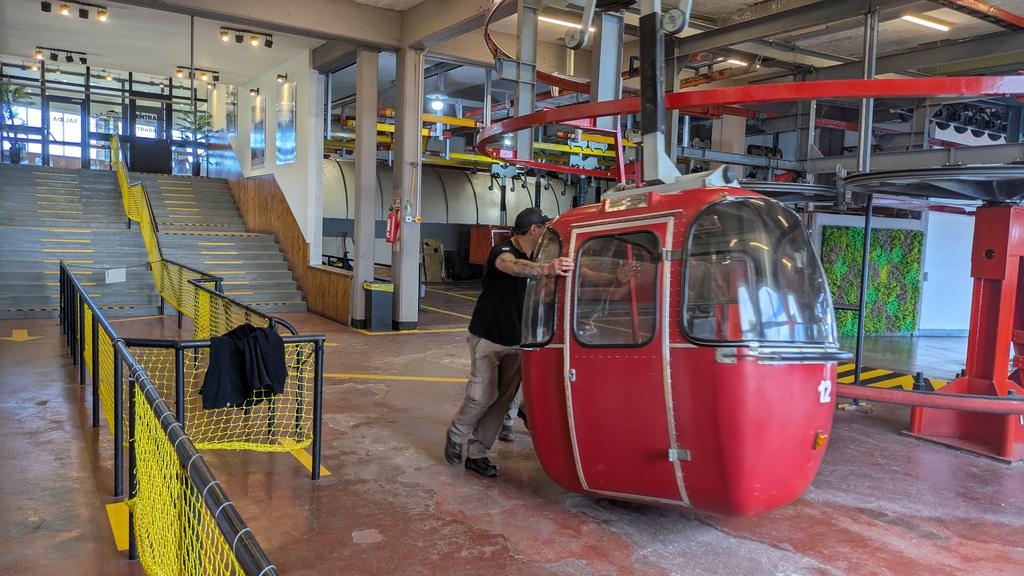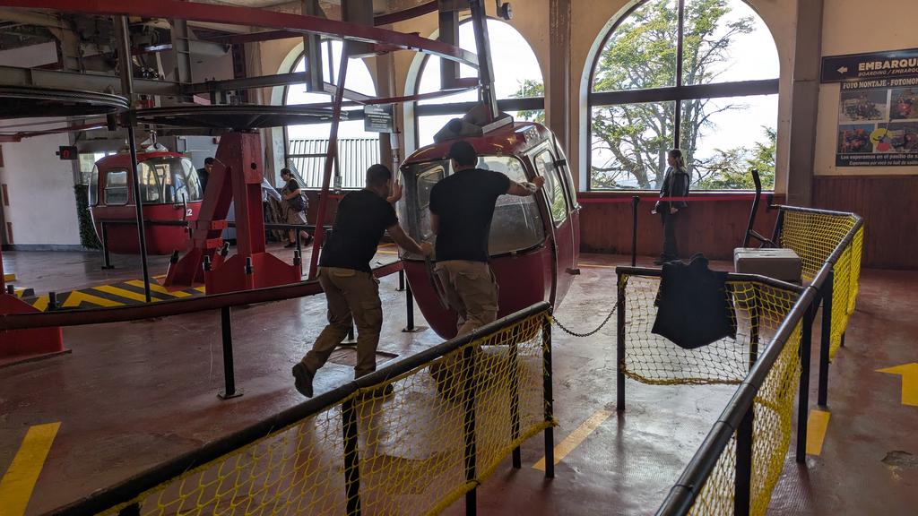 כשחזרנו לרכבל, ראינו שגם בדרך למטה החוויה של הרכבל מעט אתגרית. שלושה גברברים מחכים לקרון שיגיע, עוזרים לו לקחת את הסיבוב ומשגרים אותו להמשך הדרך. מלאי ביטחון מזוייף, עלינו שוב על קרון וירדנו למטה.
