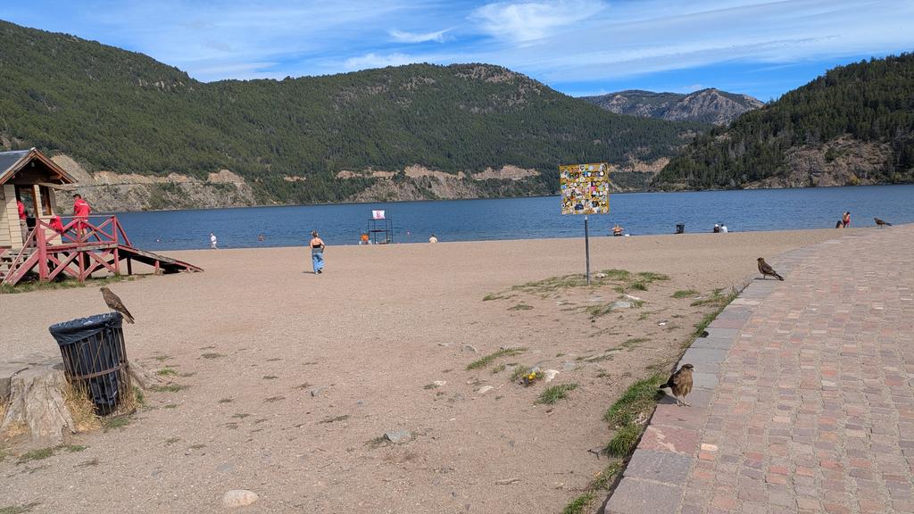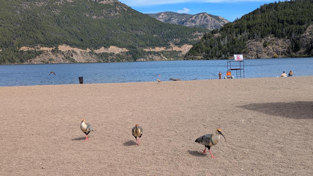 משם ירדנו לגדת האגם, חשבנו לשבת ולטעום את האלפחורס אבל על החוף הסתובבו המון ציפורים רעבתניות שממש לא חששו מבני אדם וניסו להתכבד בכל דבר אוכל שהיה שם. לא העזנו להיכנס איתן למריבה על האלפחורסים ופשוט שמרנו אותם בתיק להמשך היום.
