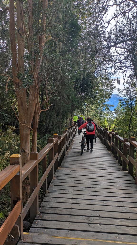 רוב הדרך הלכנו לנו לבדנו, רוכבי האופניים שהיו בלי ספק קבוצת מתחילים, עקפו אותנו ואז עקפנו אותם חזרה כשהם עצרו לנוח. בשעה וחצי האחרונות לא ראינו אותם בכלל וזה היה קצת מפתיע. כי רוב השעה הזו הלכנו בשביל שנהיה תלול וצר והיה בו שילוט שאוסר על רכיבת אופניים. ואכן מולנו הגיעו רוכבים בודדים או בזוגות שסחבו את האופניים בעליות התלולות ונראו מסכנים מאוד. אני חושבת שלמדריך הקבוצה היה מסלול מתואם אחר שדרכו הם יצאו, כי אחרת היינו אמורים לראות אותם בשביל או בנקודת הסיום.