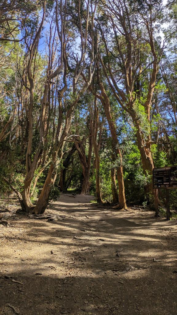 ההליכה על השביל הייתה מתונה ברובה, את עצי הקטלב השארנו מאחורינו תוך כעשר דקות ושאר הדרך הייתה בתוך יער כשמדי פעם ניתן היה לראות את האגם מציץ בין העצים מאחד הצדדים של השביל, רחוק רחוק מתחתינו. השביל מסודר ומסומן ומדי פעם יש בו גם הפנייה לשבילי חילוץ, כך שבמקרה של שריפה או סופה, ניתן לרדת לאחד החופים ולחכות לחילוץ.