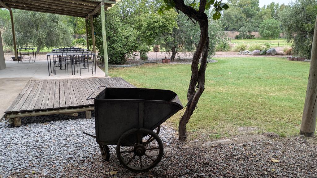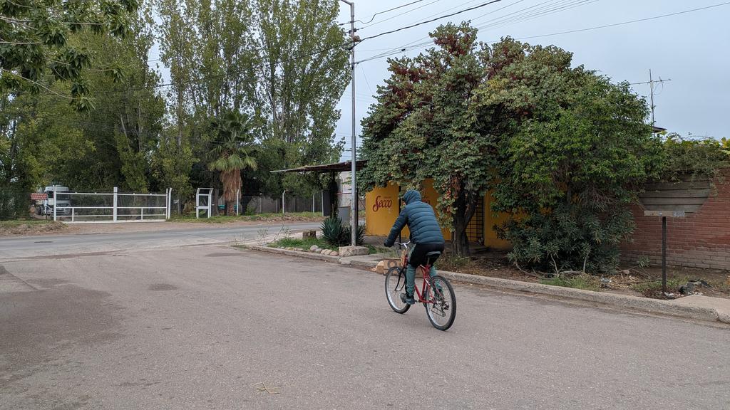 אחרי ארוחת הבוקר, לקחנו מונית שהביאה אותנו לסוכנות "האופניים של הוגו" בשכונת מאיפו (Maipú) שהיא אזור היקבים של העיר. המקום נראה סגור נטוש, הסתובבנו קצת ליד השער, נפש חיה לא הייתה ברחוב ולא כל כך ידענו מה לעשות, בסוף ניסיתי לפתוח את השער ולמרבה הפלא, הוא נפתח. באותו הזמן גם דלת הבית נפתחה והוגו יצא לקראתנו תוך כדי שהוא מסיים להתלבש, כנראה ראה אותנו מסתובבים ליד השער ומיהר להתארגן ולצאת. כמה דקות אחר כך, גם חימנה (אשתו) הצטרפה אלינו לחצר והסבירה לנו באנגלית איזה יקבים פתוחים ואיזה סגורים בגלל שזה יום ראשון, היא גם הסבירה לנו שמדובר בסוף שבוע ארוך שבו מציינים (מחר, ביום שני) את "יום הזיכרון לחללים הנעדרים" ושזו הסיבה העיקרית שהעיר כל כך מנומנמת.