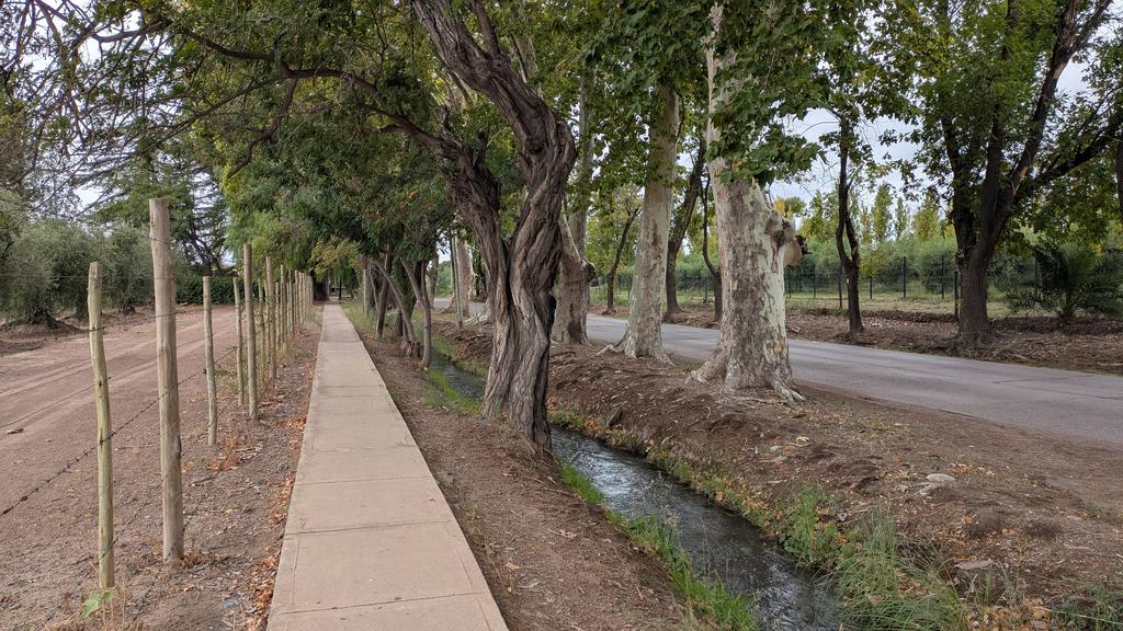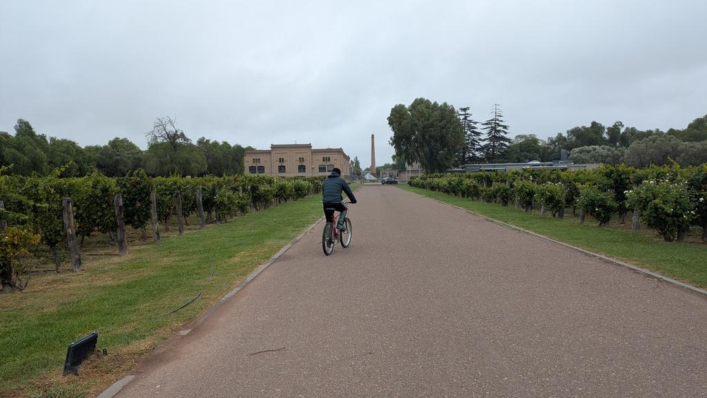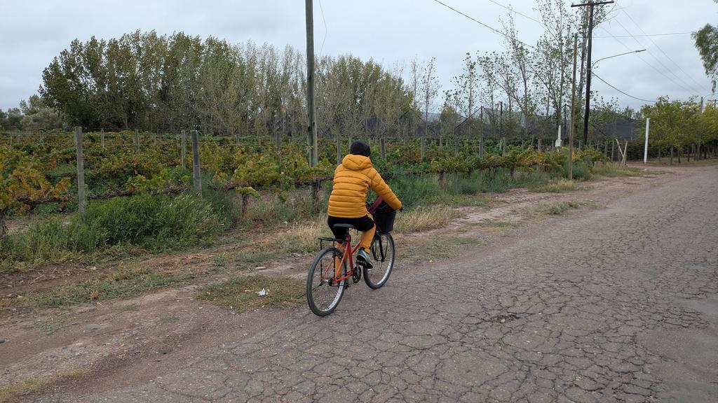 החלטנו לא להמשיך להתרחק אלא לנסוע ליקב טרפיצ'ה (Trapiche), יקב מוכר מאוד שנמצא יחסית קרוב לבית של הוגו. בדרך פספסנו פנייה אחת, מזל שדן שם לב מהר ומצא דרך חילופית שלא אילצה אותנו לחזור אחורה, כי כבר הייתי די עייפה מהרכיבה הזו. כחלק מהחזרה למסלול המקורי, הגענו לקטע דרך צדדי מאוד ולא סלול, ממש ליד שדות, כרמים ומטעים, מאוד אותנטי ואפילו קצת פסטורלי, הבעיה הייתה שהפכנו לאטרקציה של כל כלבי הרחוב הזה והם נהנו מאוד לנבוח עלינו ולרוץ לידנו עד שסוף סוף פנינו לרחוב סלול ומסודר ושם נפרדו דרכינו. הערכנו את השקט שחזר אלינו ושמחנו שנחלצנו מהם בלי שהם שמו לנו ביס ברגל.