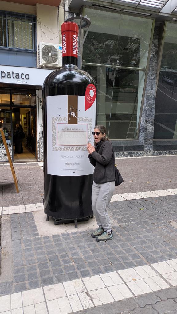 בערב הסתובבנו קצת ברחובות מנדוסה, עצרנו לאכול במסעדת בשר El Asadito · Mendoza שהייתה בסדר גמור. באחד השולחנות שלידנו ישב בחור בודד שקיבל לשולחן פלטת בשר ענקית, שאין מצב שבנאדם אחד אוכל, רצינו לראות מה הוא עושה עם כל האוכל הזה אבל הוא רק ישב שם ומדי פעם אכל עוד ביס. בסופו של דבר סיימנו לפני שהוא הלך כך שאנחנו לא יודעים מה הוא עשה עם כל האוכל שהוא קיבל אבל זה היה מאוד מוזר.