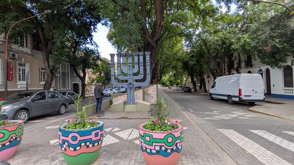 באחד הרחובות שמסביב לכיכר מצאנו פסל של מנורה עם הקדשה של שגרירות ישראל לכבוד יום הזיכרון לפיגוע בבניין הקהילה היהודית בבואנוס איירס. האמת שזה היה יפה מאוד והמיקום הוא בפינה מכובדת באזור מרכזי בעיר.