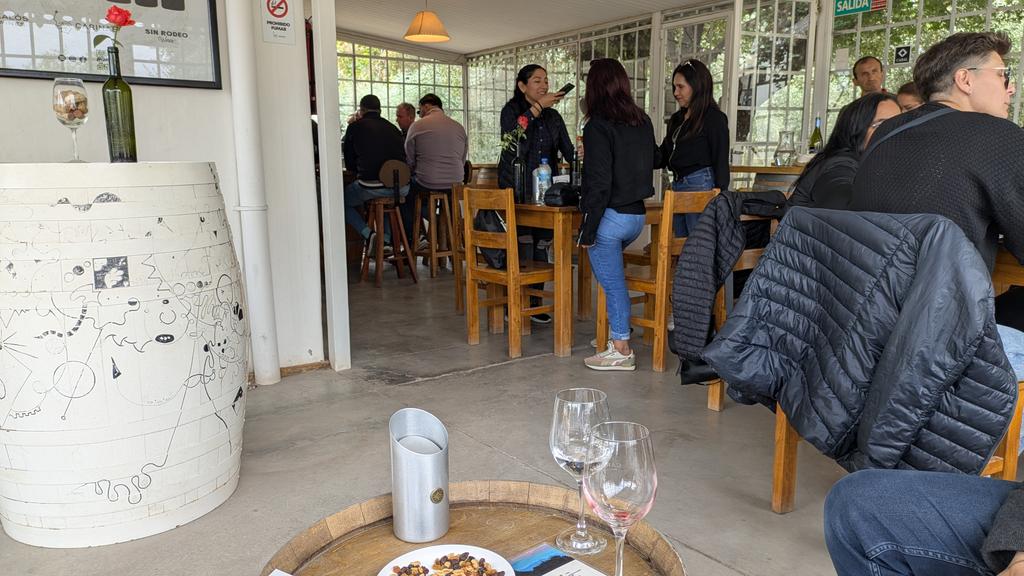 כשמיצינו את האזור (די מהר) הזמנו מונית אובר שתיקח אותנו ליקב פלוריו בשכונת מאיפו. רצינו להגיע אליו בסיור אופניים אבל הסתבר שהוא ממש מרוחק ומתאים למיטיבי דוושה ולא לנו. כשנכנסנו למרכז המבקרים של היקב, לא ראינו אף אחד, המקום עצמו היה יפה ומטופח, אך נטוש. ממש ממול מרכז המבקרים ראינו קפיטריה פתוחה, שאלנו את הבחורה שעובדת שם אם היקב סגור או פתוח, היא התקשרה לברר וכעבור כמה דקות הגיעה בחורה צעירה וקראה לנו פנימה.