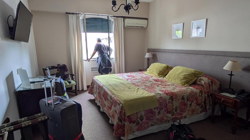 בשבע ורבע בבוקר, נפרדנו מברילוצ'ה והמראנו לכיוון מנדוסה. ובשעה תשע וחצי כבר עלינו על מונית למלון. לשמחתנו הרבה כשהגענו למלון הם פשוט נתנו לנו את החדר שהזמנו כך שיכולנו לפרוק את הדברים שלנו ומיד יצאנו לאכול ארוחת בוקר של טוסטים וקפה באזור המלון. כשהסתובבנו בחוץ הייתה ממש תחושה של עיר רפאים, למרות שחצינו רחובות די ראשיים, כמעט שלא ראינו אנשים ובקושי היו מכוניות על הכבישים, הנחנו שזה קשור לכך שיום ראשון הוא יום מנוחה אצלם.