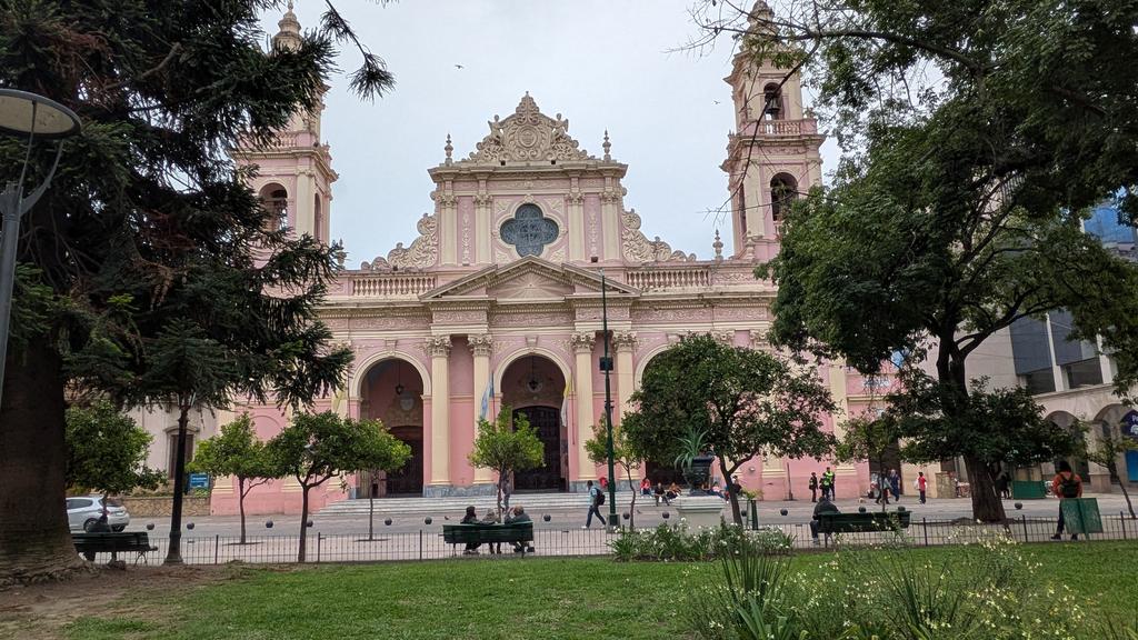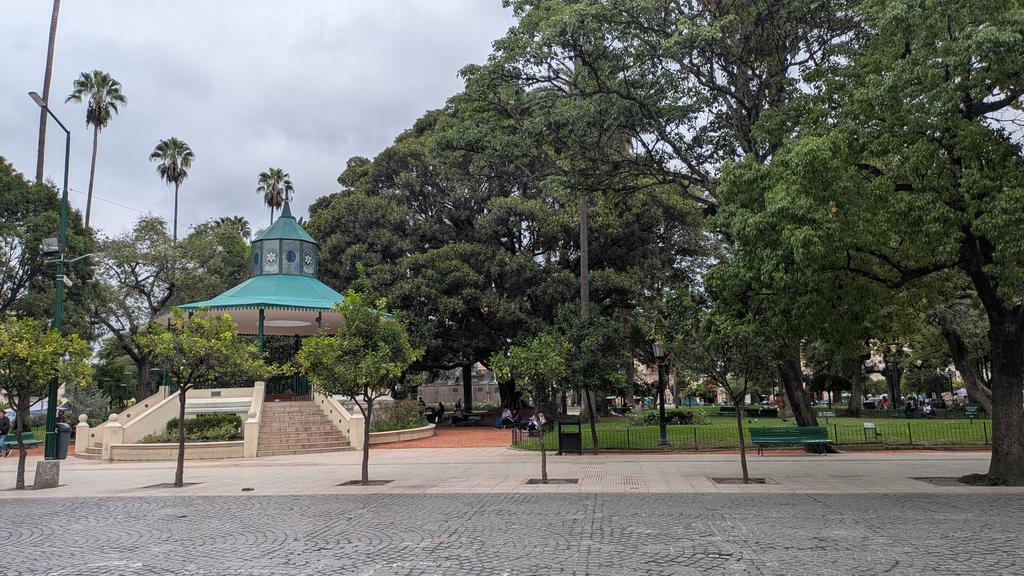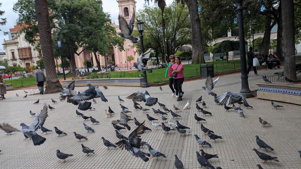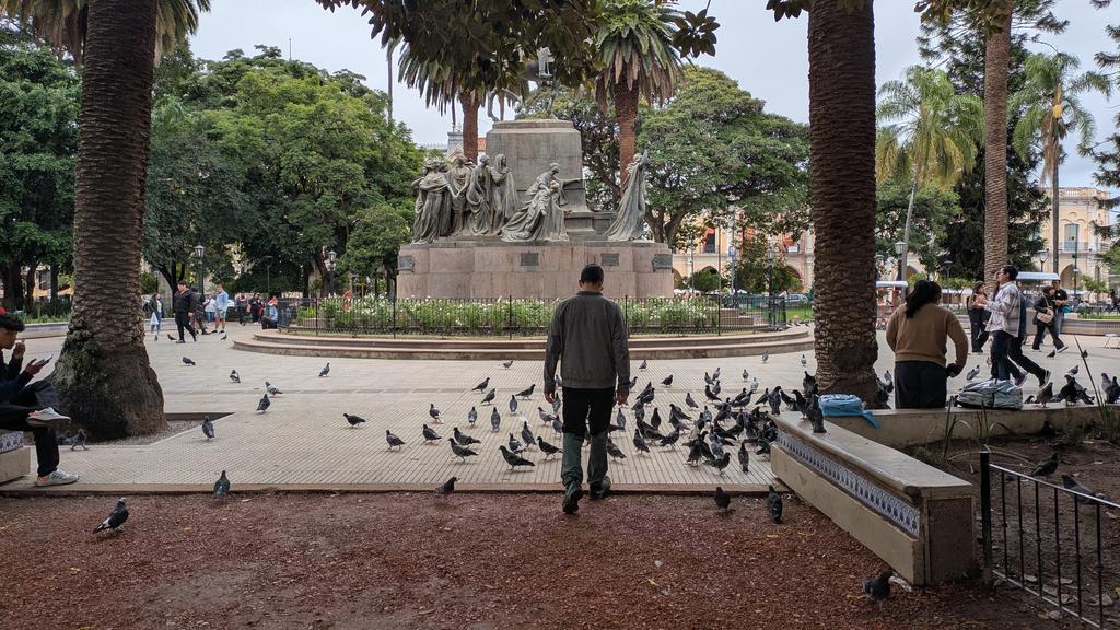 המלון ממוקם בפינת כיכר "התשיעי ביולי" ( 9.7.1816 הוא יום הכרזת העצמאות של ארגנטינה). מיקום מעולה בלב האזור התיירותי היפה והמטופח של סלטה, יצאנו מהמלון ופשוט חצינו את הכביש אל הכיכר היפה. ברגע הראשון היא נראתה לנו שקטה וריקה, אך כעבור כמה צעדים נתקלנו בעשרות יונים שהציפו את האזור וכמובן שהיו גם קצת אנשים.