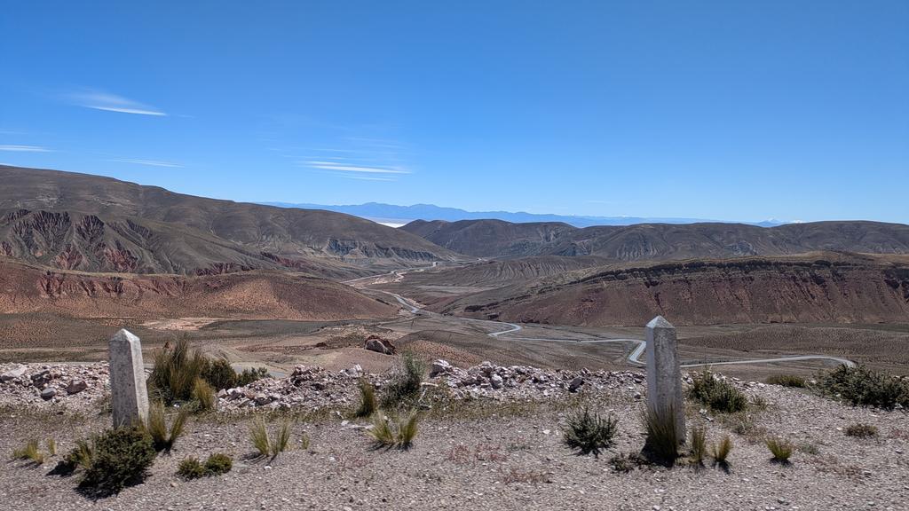הנסיעה לשם די ארוכה, קודם כל צריך להגיע לעיירה שאין דרך לכתוב את השם שלה בעברית – Humahuaca ואז ירדנו מהכביש הראשי ומאותו רגע נסענו כ-23 קילומטרים על דרך צדדית שהתפתלה לתוך ההרים וטיפסה בהדרגה עד לגובה של כ- 4100 מטר. באמצע העלייה ראינו מישהו שנתקע בלי דלק. זה היה קצת מלחיץ כי פתאום נזכרנו שלא תדלקנו כשהגענו לטילקרה ולא ידענו כמה נסיעה עוד צפויה לנו עד שנגיע לתחנת דלק (ממש אין שם הרבה תחנות) אבל בשלב הזה כבר היינו יותר קרובים לתצפית מאשר לעיירה אז המשכנו לנסוע וקיווינו לטוב (היה טוב, הצלחנו).