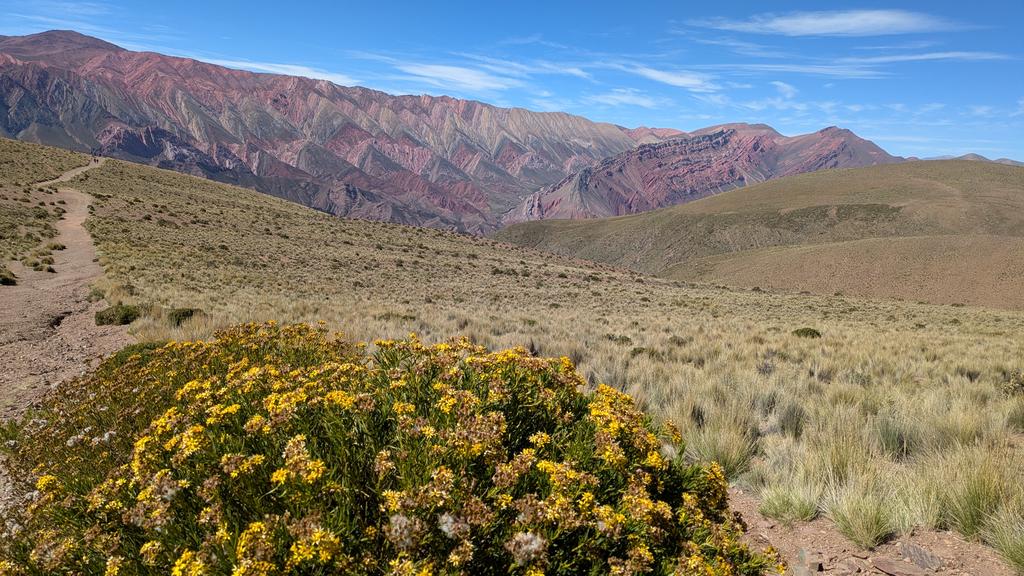 מטילקרה נסענו להר שבעת הצבעים (Cerro de los Siete Colores). החנינו את הרכב ברחוב הראשי ממש בכניסה לעיירה Purmamarca, זה רחוב ארוך שעומדים בו שלושה מקומיים (אינדיאנים) וגובים תשלום עבור החנייה. הבחור החביב שגבה מאיתנו שמע שאנחנו מישראל ומאוד התרגש מייד שלף את הטלפון והראה לנו סרטונים שצולמו ממש שם בחודשים האחרונים ועסקו בנושא החטופים הישראלים. סיפרנו לו שחלק מהחטופים חזרו לאחרונה וגילינו שהוא כבר מעודכן ושמח איתנו.
