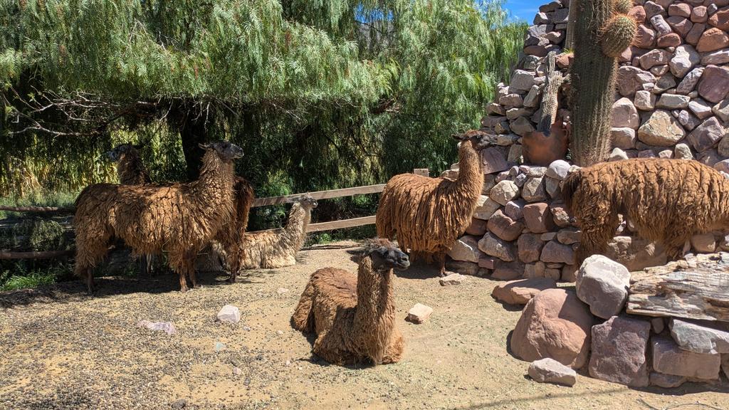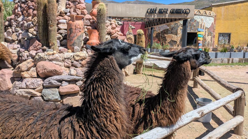 תדלקנו בעיירה הומאוקה (החלטתי לנסות לכתוב את שמה בעברית וככה אני מהמרת שזה אמור להיות), ומשם התחלנו לנסוע אל הקניון האדום, בדרך ראינו מרכז קניות קטן, עם חצר ובה למות צמריריות, החלטנו לעצור ולראות במה מדובר. מצאנו חנות מזכרות גדולה וחביבה שגולת הכותרת שלה זה החצר בחוץ עם הלמות החמודות. לא באמת עניין אותנו לקנות שם משהו ולכן די מהר המשכנו לכיוון הקניון האדום, הקניון של הסניוריטות (Quebrada de las Señoritas).