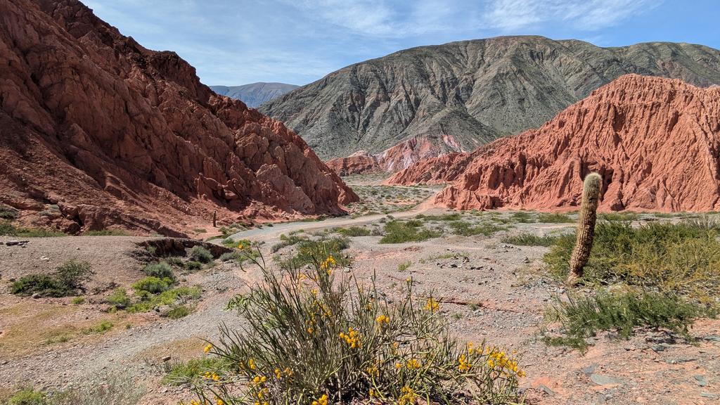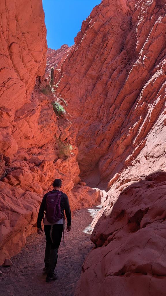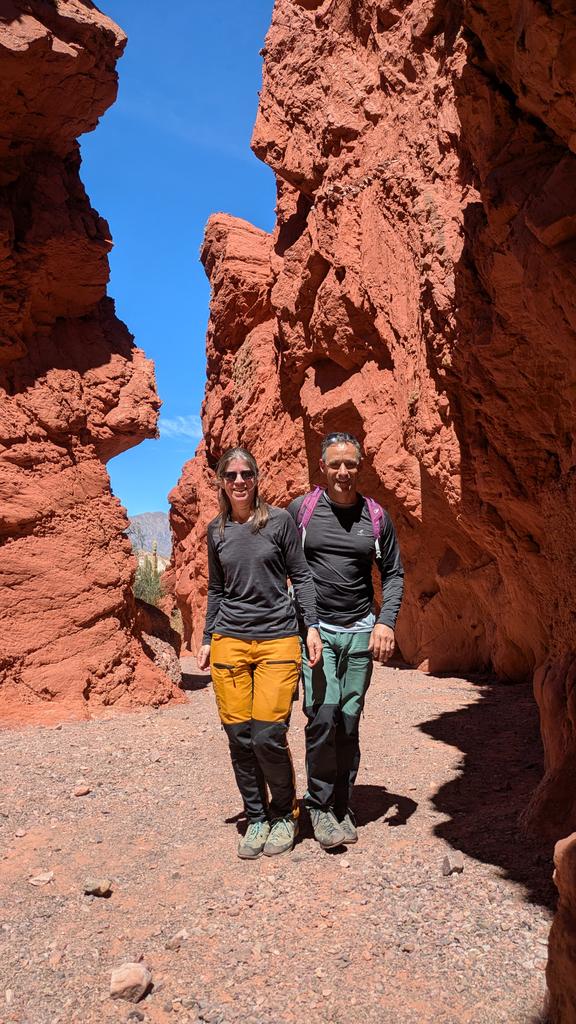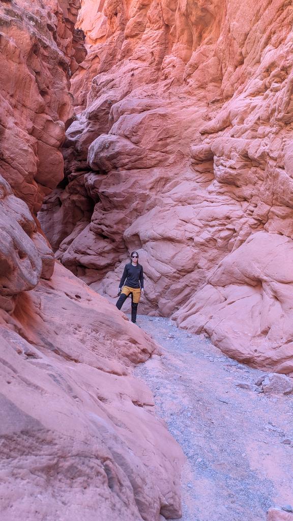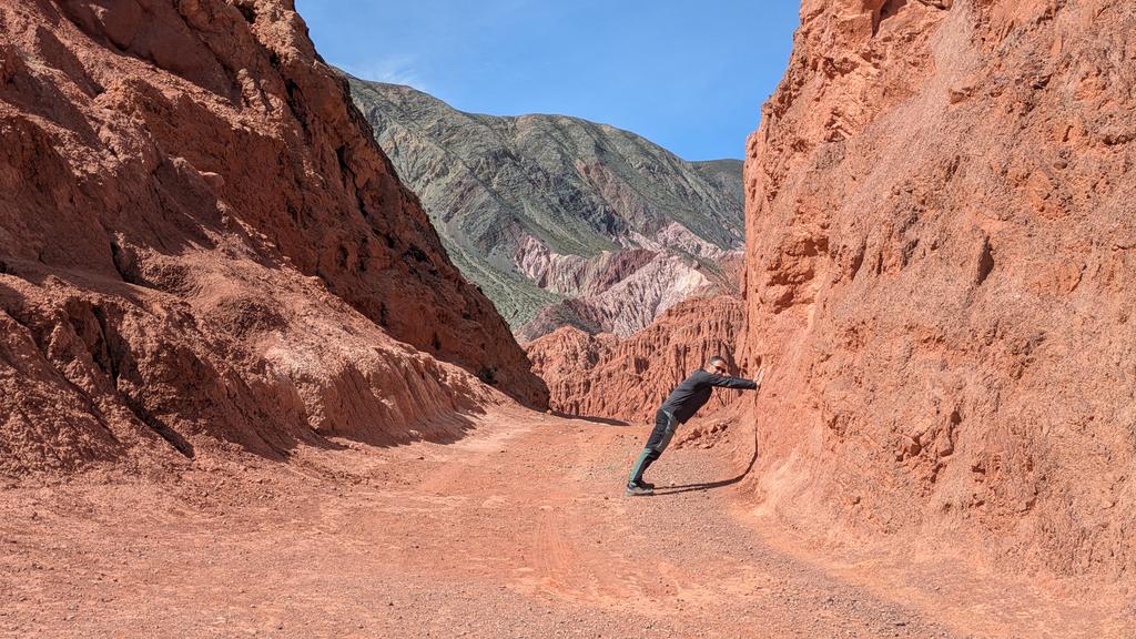 המסלול עובר בעמק צבעוני ולדעתי מדהים ביופיו, הגוונים והיו עמוקים וברורים והשביל חוצה את העמק כך שזה יותר מרשים מתצפית מרוחקת כמו שהיה לנו בהר 14 הצבעים. סך הכל לקח לנו כחצי שעה עד לצד השני והיינו כמעט לבד לגמרי לכל אורך המסלול, כשהיינו באמצע הדרך ראינו עוד זוג שהתחיל את המסלול וזהו. אני מניחה שמדי פעם מגיע אוטובוס תיירים מסלטה ואז קצת יותר עמוס.