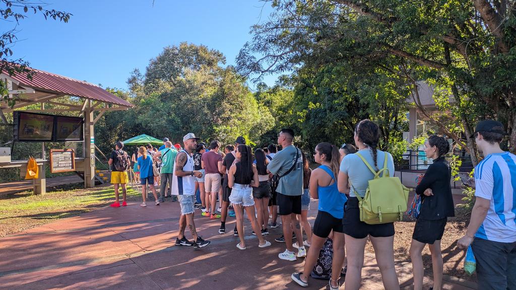 מיגל אסף אותנו בול בשמונה. כשהגענו לפארק (נסיעה של כחצי שעה) עמדנו בתור כדי לקנות כרטיסים, בינתיים מיגל הלך לדבר עם החברה שמוציאים את השייט למפלים כך שברגע שסיימנו בקופה הראשית הוא הביא אותנו אליהם וקנינו כרטיסים לשייט הראשון של הבוקר.