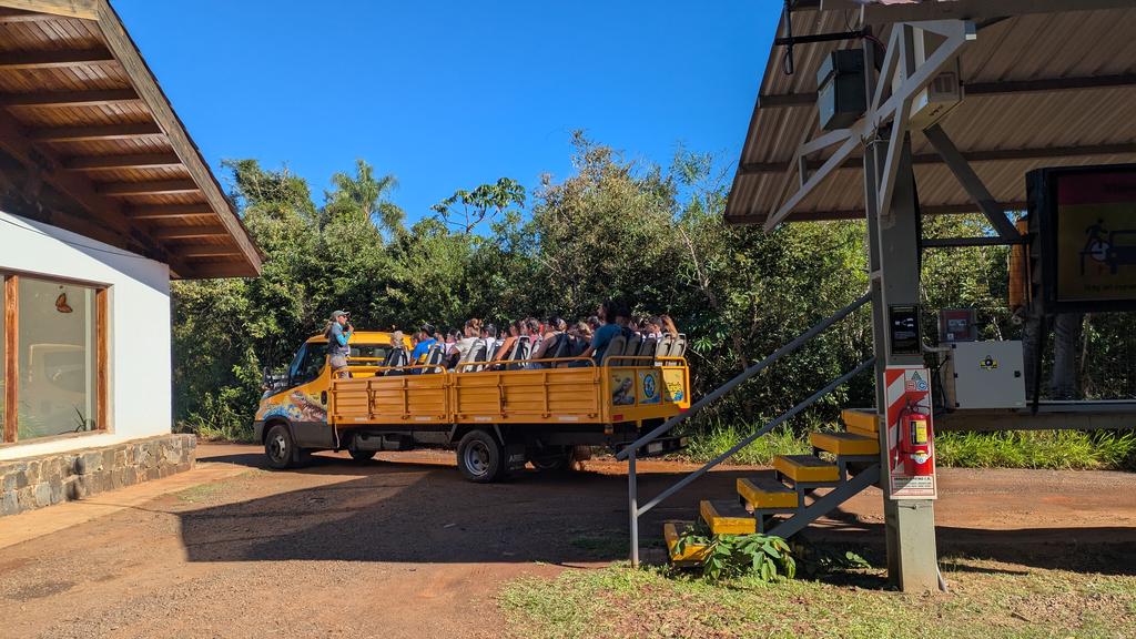 ב7 וחצי בבוקר, מיגל אסף אותנו עם המזוודות ונסענו לצד הברזילאי, מעבר הגבול הלך חלק. הגענו לצד הברזילאי של המפלים עוד לפני שנפתח. בשלב מסויים עמדת כרטיסים האוטומטית נפתחה ומיגל עזר לדן לקנות כרטיסים, פשוט אמר לו איפה לוחצים וקיצר את התהליך. בשעה רבע לתשע יצא האוטובוס הראשון לכיוון המפלים ואנחנו עליו.