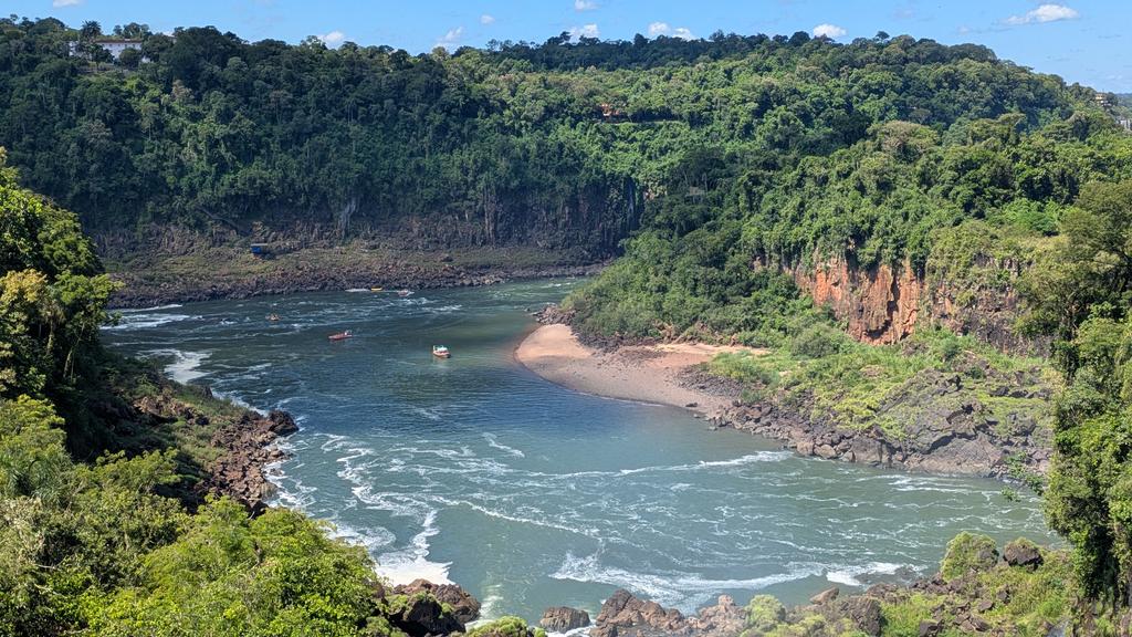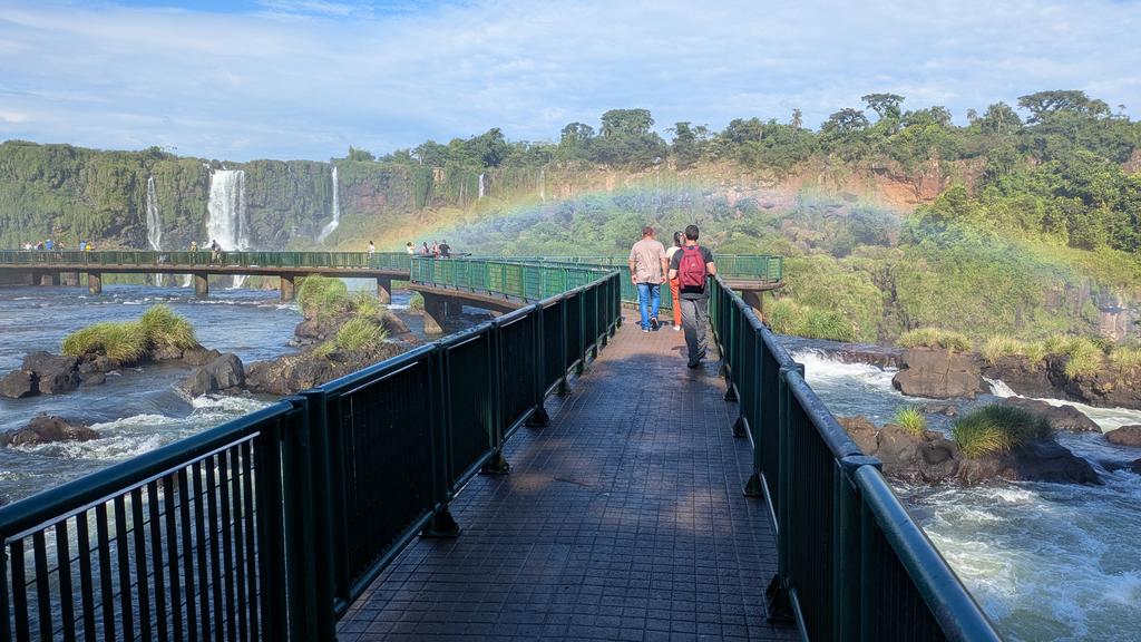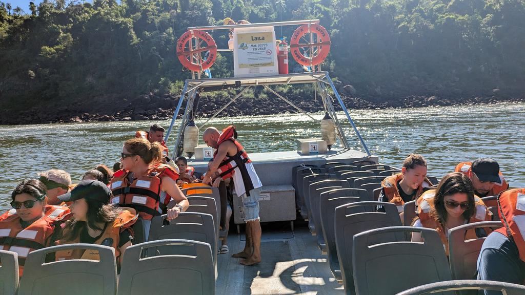 בשבילי הפארק פגשנו זוג ישראלים, בערך בני גילנו שהיו בדרך לארגנטינה כחלק מטיול זורם של כמה חודשים בדרום אמריקה. הם סיפרו לנו שיש להם טיסה לבואנוס איירס, מחר לפנות בוקר וגם שאלו אותנו אם אנחנו ממליצים על השייט למפלים. אמרנו להם שהשייט מאוד מומלץ אבל שאם הם לא יגיעו לפארק בשעה וחצי הקרובות, הם פשוט לא יספיקו, כי השייט האחרון יוצא בשעה אחת בצהריים. הם ממש התבאסו כי הם חשבו שיש שייט גם אחרי הצהריים, ליתר ביטחון הם עזבו הכל ורצו החוצה כדי לנסות להספיק את השייט.