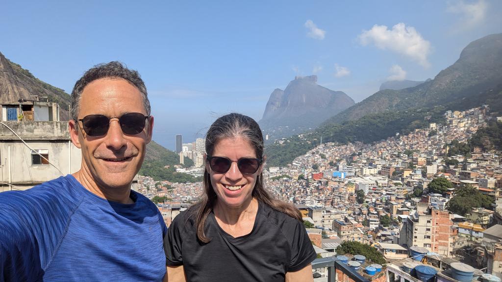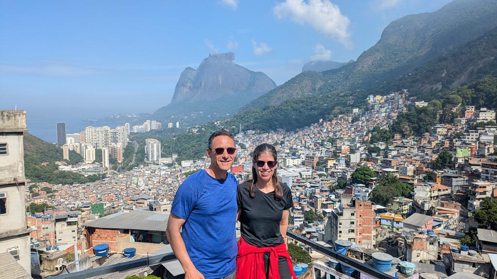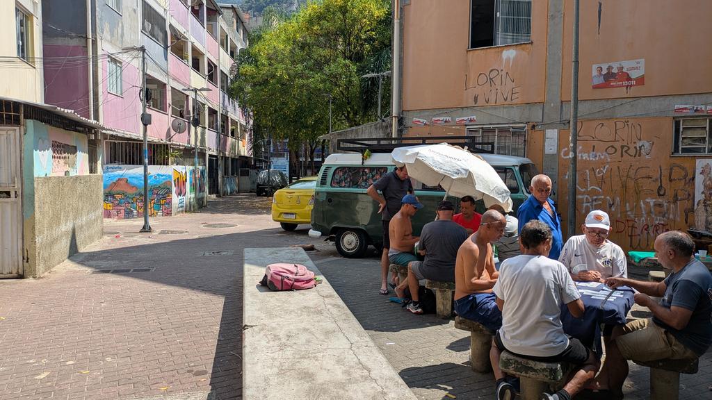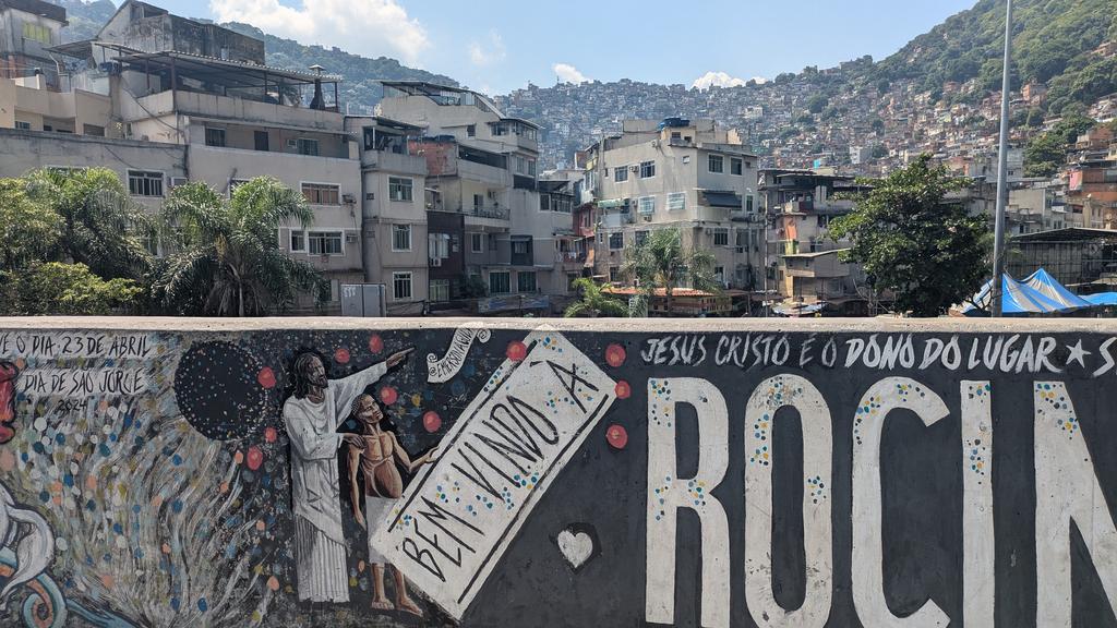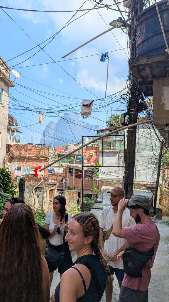 תחנה ראשונה הייתה אחת הפאבלות, פאבלת רוסינייה שנחשבת לפאבלה הגדולה ביותר בדרום אמריקה. ממש בכניסה לפאבלה פגשנו את אדסון שלקח אותנו לסיור בתוך הפאבלה. מסתבר שהוא נשוי לקארין ממארגני הסיור ובעבר הם גרו יחד בישראל. היום הם גרים בחלק התחתון והיותר "יוקרתי" של הפאבלה ויש להם ילד בן שנתיים, שנולד בישראל. בהתחלה כשהם עברו לריו הוא הלך לגן בפאבלה אבל כשאנשים מהקהילה שמעו שיש ילד יהודי מישראל שגר בפאבלה, הם ארגנו לו מקום בגן ששייך לקהילה היהודית המבוססת והעשירה. בלי העזרה הזו מהקהילה, הם לא היו יכולים להרשות לעצמם גן כזה. בנוסף הוא סיפר לנו שהם עשו לעצמם ביטוח בריאות פרטי כמו כל מי שיש לו קצת כסף – ביטוח כזה עולה בברזיל כמו משכורת ממוצעת.